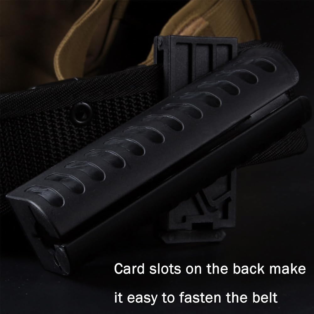 【Adjustable Design】This baton rack comes with adjustable width, which makes it suitable for most belts. The card slot on the back can easily buckle the belt for your convenience.