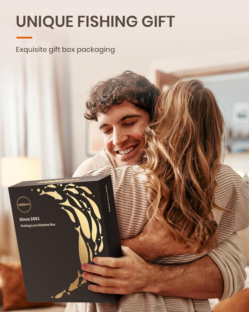 تغليف هدايا رائع: أبهر عشاق الصيد وهواة الجمع في حياتك من خلال صندوق ظلال طُعم الصيد الخاص بنا، والمقدم بأناقة في صندوق هدايا مختوم بالذهب. مثالي للمناسبات مثل عيد الأب، والكريسماس، والذكرى السنوية، وأعياد الميلاد، وحفلات التقاعد. فاجئ أحبائك بهدية الصيد المثالية هذه.