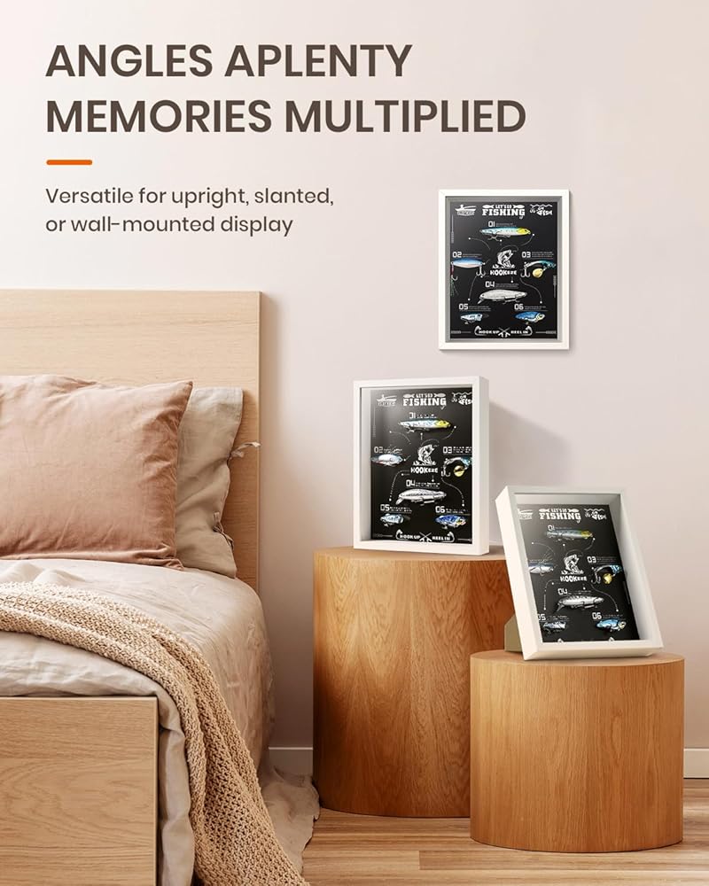 خيارات العرض المرنة: متعدد الاستخدامات في التصميم، يوفر صندوق الظل الخاص بنا تكوينات عرض متعددة، بما في ذلك الوضع المستقيم والمائل (يأتي مع حامل)، والمثبت على الحائط (يتضمن حامل صور لا أثر له وخطاف على شكل حرف S). سواء كنت تزين مكتبًا أو رفًا أو جدارًا، فإنها تضيف لمسة زخرفية إلى أي مساحة، مما يجعلها مثالية لإظهار حبك لصيد الأسماك.