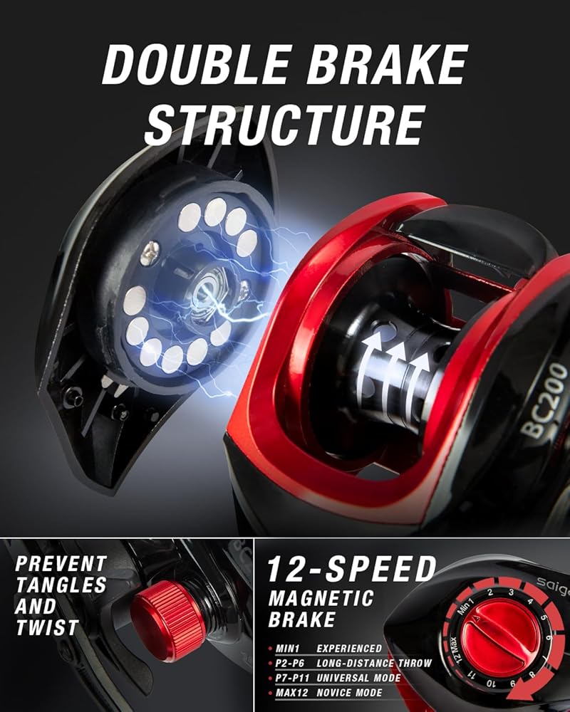 【نظام فرامل قوي】الأسرع في تشكيلة فريق Ghosthorn، تتميز بكرة الطعم بنسبة تروس 8.1:1 مع محمل 18+1 لتقديم أداء عالي السرعة. يوفر نظام السحب القوي قوة توقف مذهلة تصل إلى 15.4 رطلاً دون التضحية بالنعومة. يمكن لبكرة الصيد ذات هيكل الفرامل المزدوجة أن تمنع تشابك الخط الموجود داخل البكرة، مما يجعل عملية الصب أسهل.