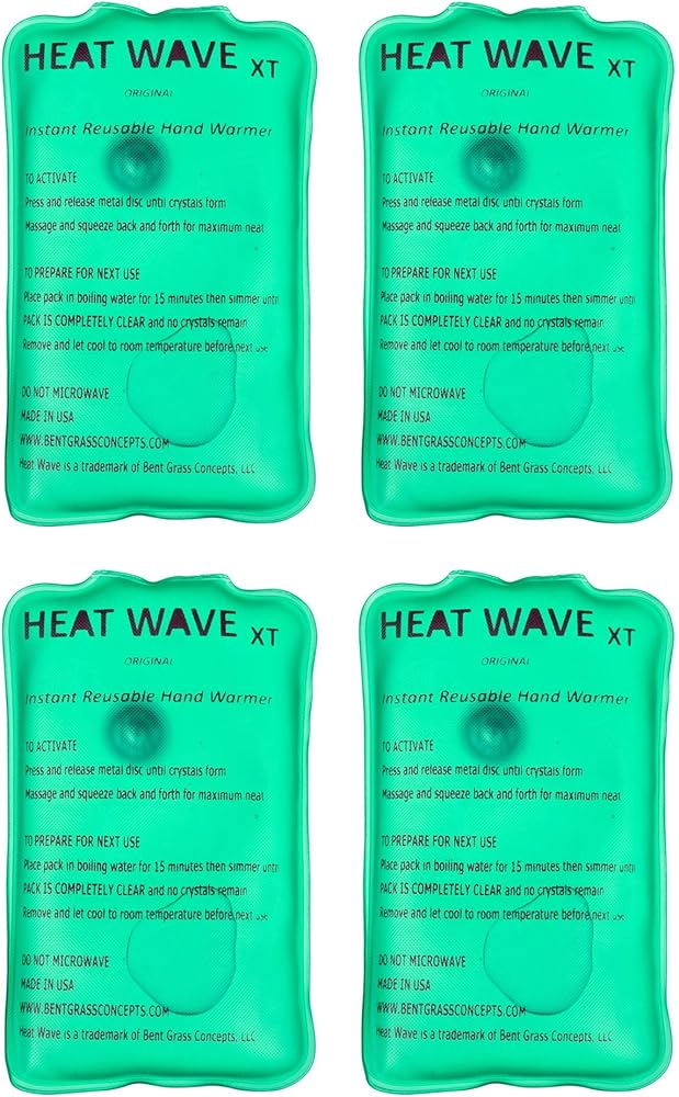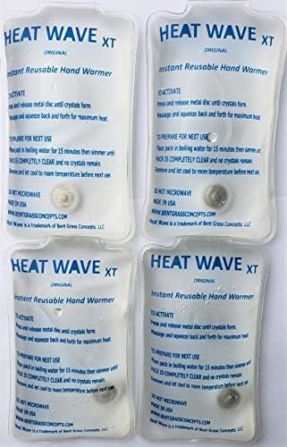 صنع في الولايات المتحدة الأمريكية: حزمة حرارية فورية قابلة لإعادة الاستخدام من HEAT WAVE، حزمة XT كبيرة لتدفئة الأيدي فورية وقابلة لإعادة الاستخدام، 4 عبوات، للتخييم والمشي لمسافات طويلة وتخفيف الألم (3 × 6)، انقر فوق الحرارة