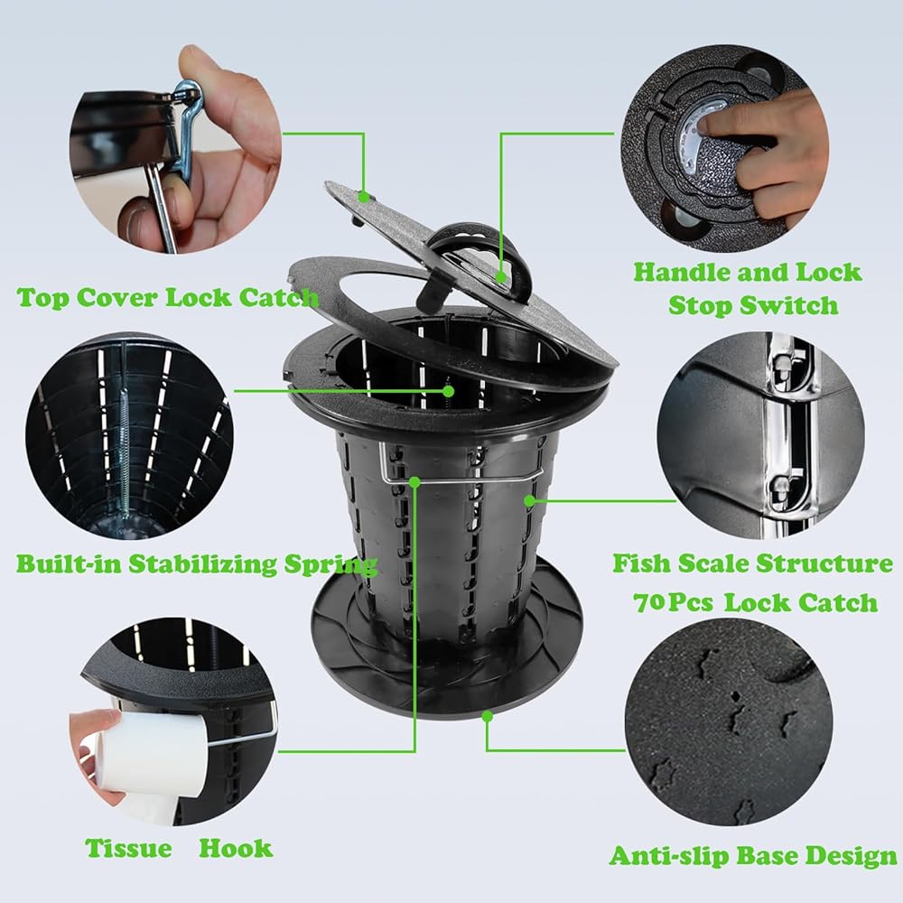 3.🌟متعدد الوظائف وقابل للتطبيق على نطاق واسع: يعتمد هذا المرحاض المحمول للتخييم على تصميم متعدد الوظائف يجعلك حرًا في تبديل أوضاع الاستخدام المختلفة، وهو عملي للغاية. لا يمكن استخدام النونية المحمولة كمرحاض تخييم محمول فحسب، بل أيضًا كقمامة أو مقعد أو دلو للقيء. لتلبية احتياجاتك المختلفة عند ممارسة الأنشطة الخارجية. مثالية للتخييم، والمشي لمسافات طويلة، والشاطئ، وصيد الأسماك، وركوب القوارب، والسفر، ومربى المرور، وموقع البناء، ورحلات الطريق الطويلة وفي أي مكان في حالات الطوارئ.