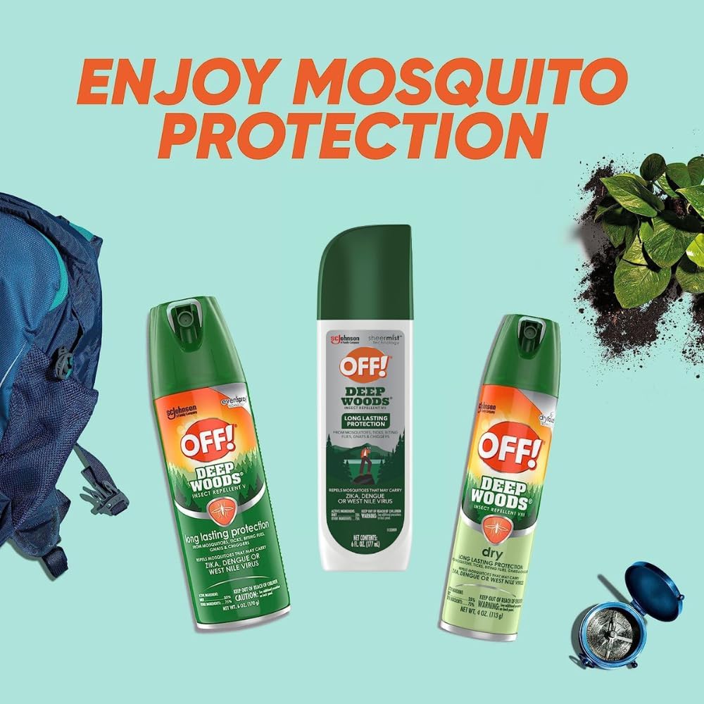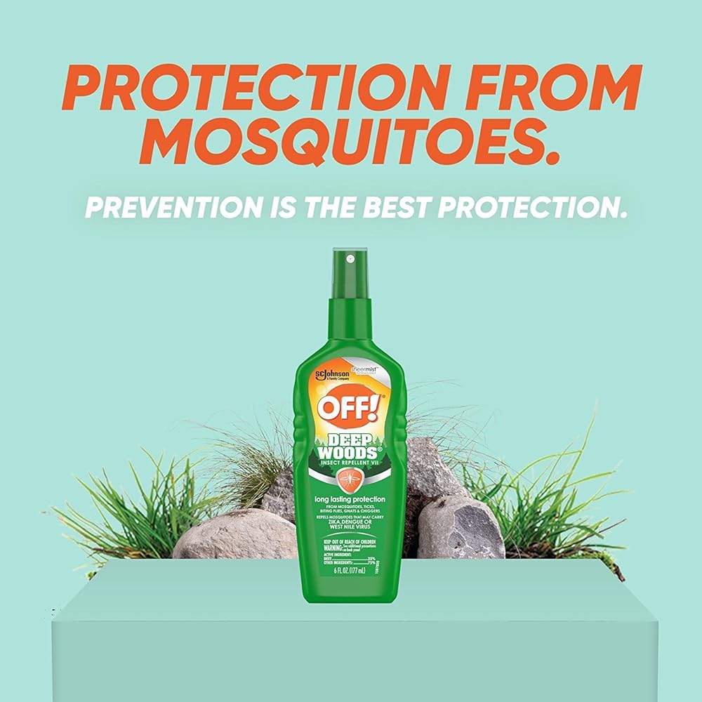 OFF! Deep Woods Insect provides long-lasting protection against mosquitoes that may carry the viruses. Our pump mosquito spray allows easy application to skin and clothing. Ideal for camping, fishing, hiking and hunting, so you can keep living life your way. Keep out of reach of children and pets. See the label for other precautions and usage directions.