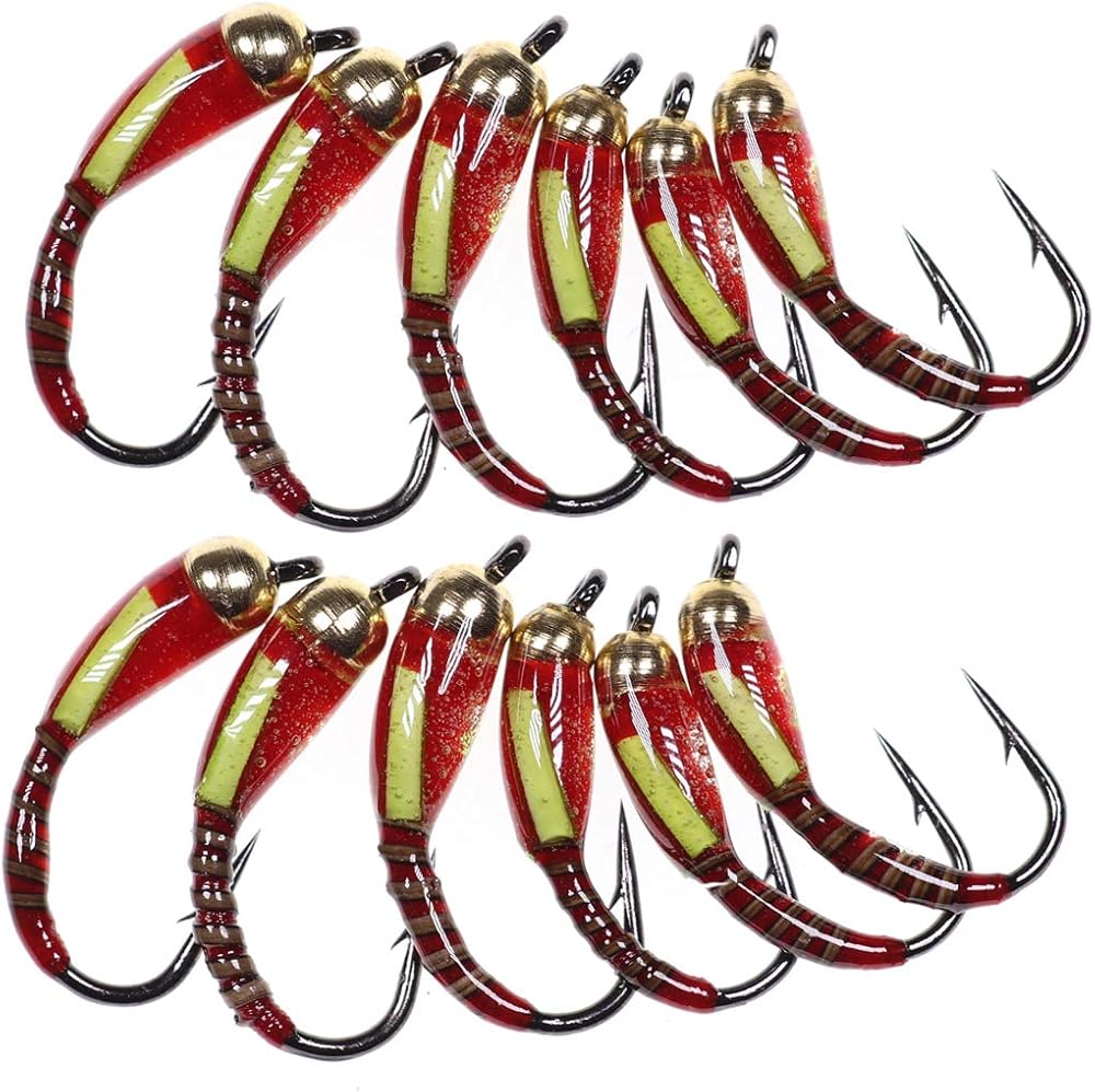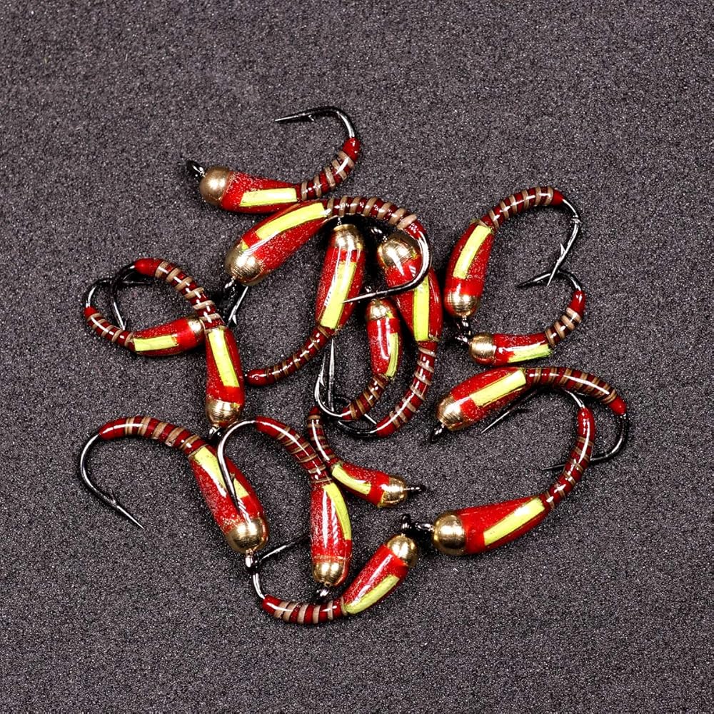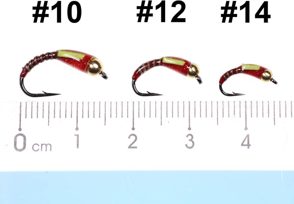 Wifreo Fly Fishing Bead Head Midge Nymph Fly لسمك السلمون المرقط Carppie Bluegill Ice Fishing الحجم 10 12 14 حزمة من 12 (حجم ميكس، حزمة من 12)