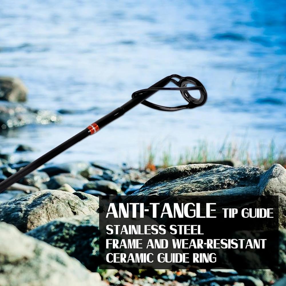 خفيفة الوزن وحساسة --- مصنوعة من مادة ألياف الكربون بوزن 24 طن، تحافظ هذه المادة على الوزن الخفيف والحساس. خفيف الوزن يقلل من تعب الصياد أثناء جلسات الرمي الطويلة، بينما تسمح لك الحساسية العالية بالكشف حتى عن أدق العضات، مما يزيد بشكل كبير من فرص الإمساك بالأسماك.