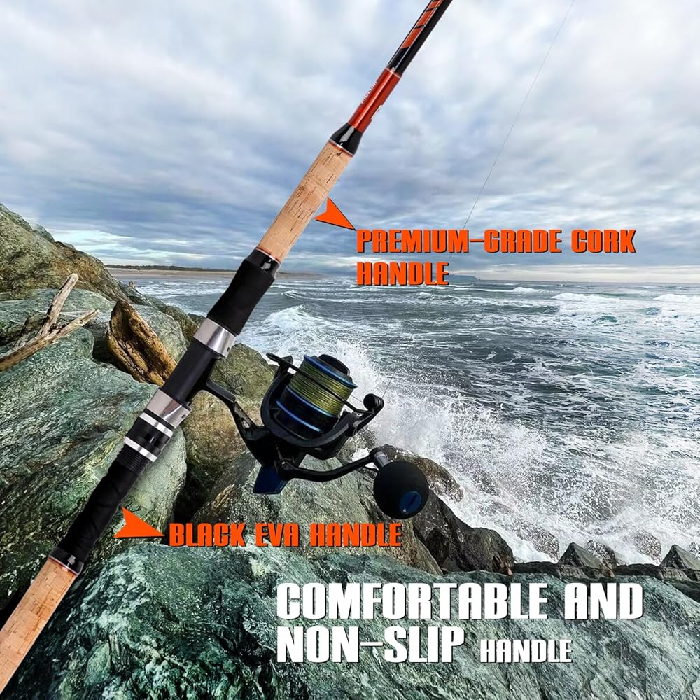 صنارة صيد ذات قيمة جيدة---قضبان صيد الأسماك من Fiblink بأسعار معقولة ومثالية لصيد الأسماك على الشاطئ. مصنوعة من ألياف الكربون الفارغة، وأدلة من الفولاذ المقاوم للصدأ مع حشوات من السيراميك، ومقعد بكرة مريح عالي القوة، وأغطية مؤخرة مطاطية، وقبضة فلين ممتازة مع مقبض إسفنجي EVA أسود، هذا القضيب خفيف الوزن وسريع الاستجابة!
