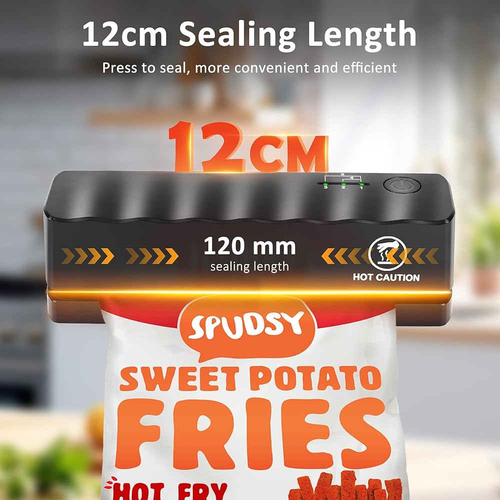 • REALLY WORKS! SUPER EASY TO USE: Your mini heat sealer features a one-press quick sealing design, sealing individual bags precisely and completely. With a longer heated length than other mini sealers, the 4.72 inch heating strip ensures this mini bag sealer works faster and more effectively!
