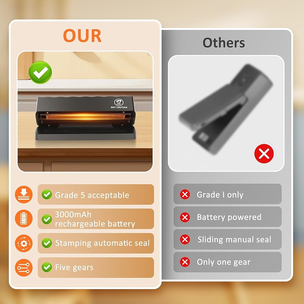 • RECHARGEABLE: This portable bag sealer uses the latest technology and features a built-in 3000mAh battery, which can be reused up to 400 times after a full charge. No need to buy extra batteries, it's more eco-friendly than battery-operated sealers and saves a lot on battery costs.