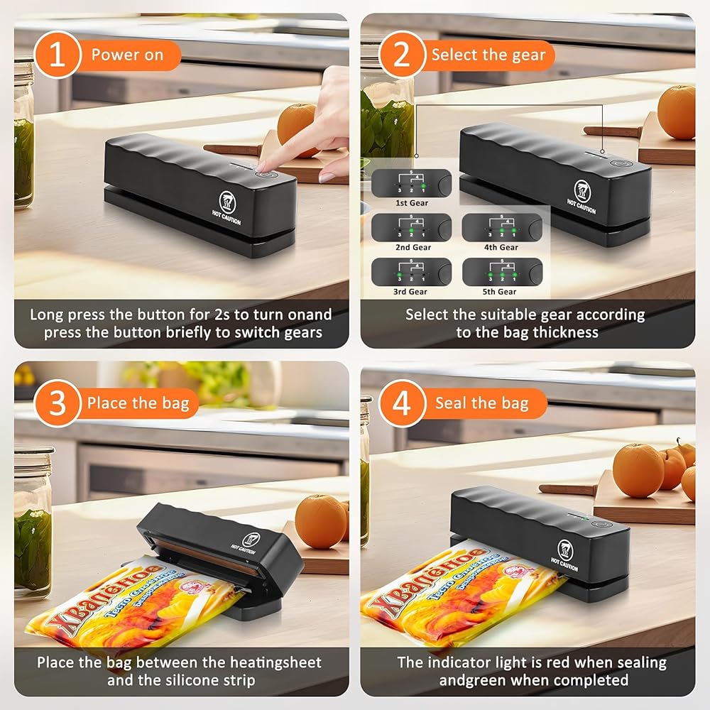• GREAT KITCHEN GADGET: Our mini bag sealer is compact and lightweight with excellent craftsmanship. It's perfect for home kitchens, travel, camping, picnics, and other outdoor activities. It fits in any bag and is ready to use in seconds!