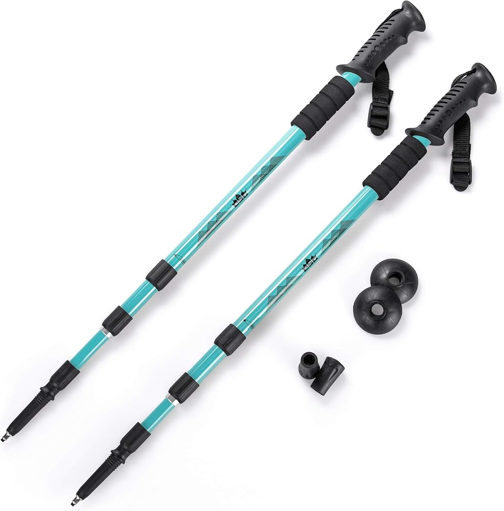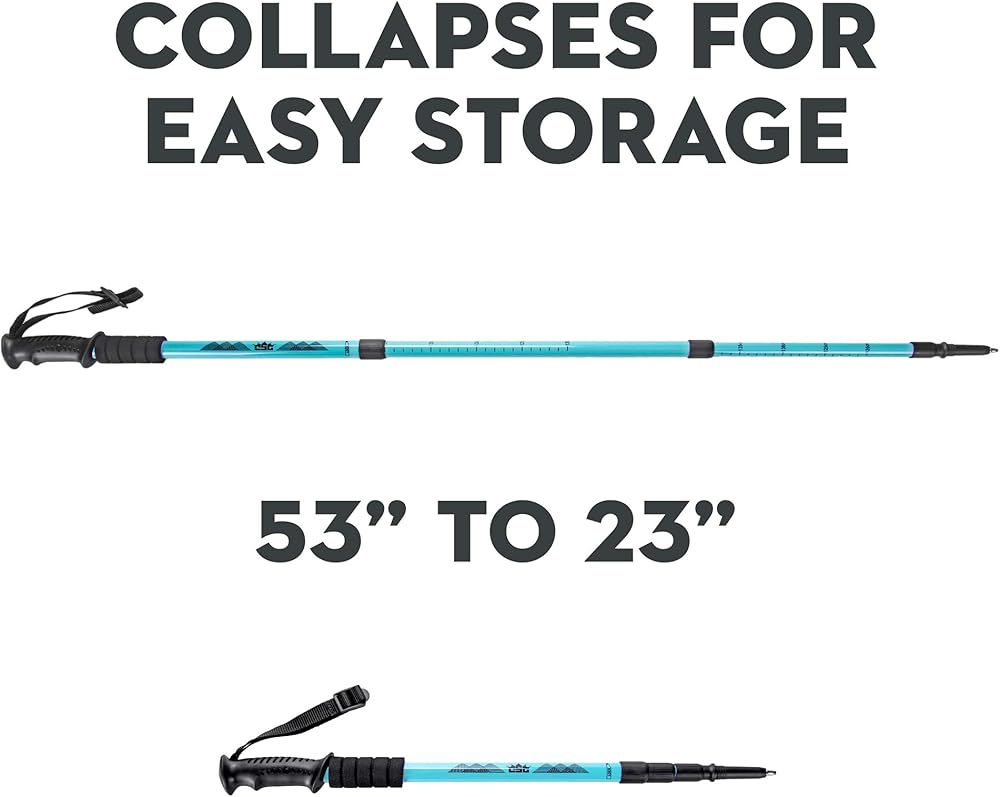 عبوتان من عصا الرحلات وطاقم المشي للسيدات | ألومنيوم قوي وخفيف الوزن | تصغير الطول 53 بوصة ينهار إلى 23 بوصة | جميع التضاريس: طرف معول ثلج من الكربونيت قابل للتبديل، طرف مطاطي، غطاء ثلجي (أزرق مخضر)