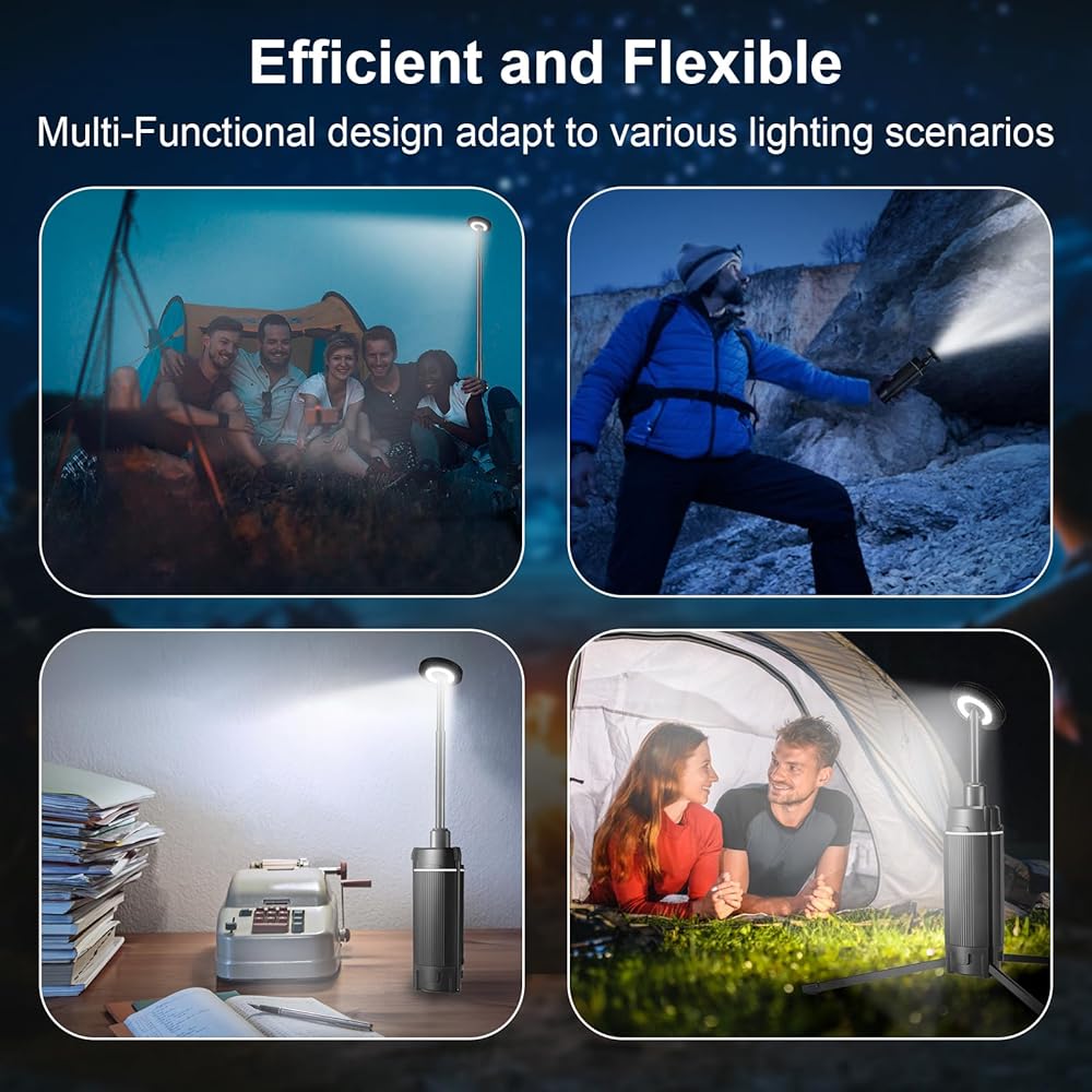 【مجموعة واسعة من التطبيقات】يمكن تحويل فانوس التخييم LED بمرونة إلى مصابيح يدوية، ومصابيح قدم عالية، ومصابيح مكتبية وأضواء حقيبة الظهر، للتكيف مع التخييم RV، وصيانة السيارات، وصيد الأسماك، وانقطاع الطاقة في حالات الطوارئ والسيناريوهات الأخرى. نحن ندرك أهمية الإضاءة المحمولة في الأنشطة الخارجية، لذلك نقدم دعم العملاء في غضون 24 ساعة لضمان حصول كل مستخدم على المساعدة والدعم في الوقت المناسب في أي موقف. مصباح التخييم هذا هو مغامرتك الخارجية، لذلك لا داعي للقلق بشأن الإضاءة أثناء الاستمتاع بجمال الطبيعة.