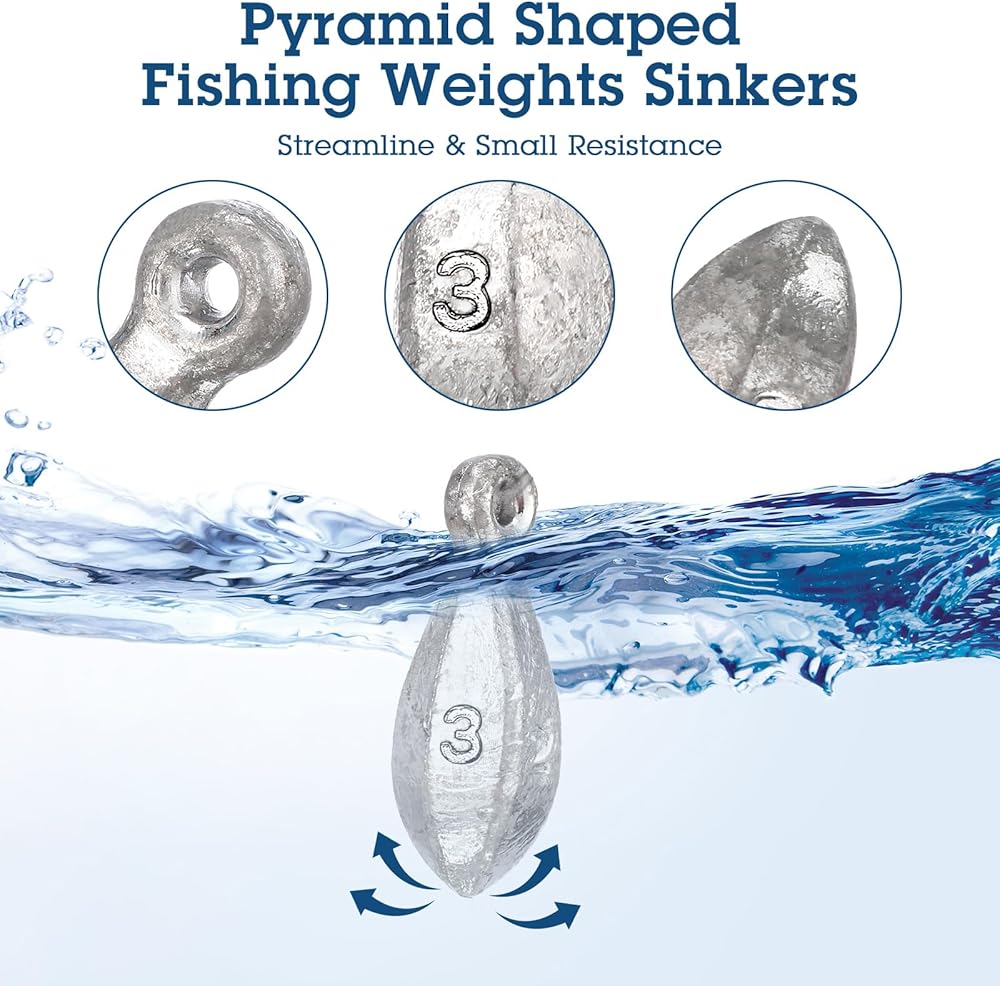 معدات صيد مفيدة: الأوزان الهرمية لصيد الأسماك بها فتحة، مما يجعل من السهل ربط خط الصيد الخاص بك مباشرة من خلال المركز دون التسبب في أي ضرر له؛ يقلل هذا التصميم من الاضطراب ويساعد في الغمر السريع في المياه العميقة