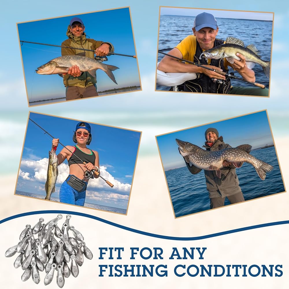 تصميم فريد: تم تصميم أوزان الصيد هذه خصيصًا بنمط مثلث لتقليل مقاومة الماء؛ تصميمها الفعال يقلل من فرص الوقوع على الحجارة أو الصخور، مما يعزز سهولة الاستخدام