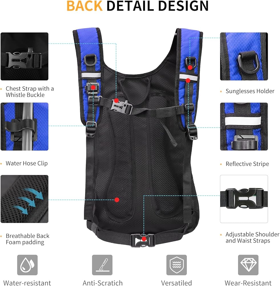 ضمان ما بعد البيع: يتكون نظام حقيبة الظهر المرطبة خفيفة الوزن من حقيبة ظهر سعة 20 لترًا مع كيس ماء سعة 2 لتر، حقيبة الظهر للجري متوفرة بثمانية ألوان حتى تتمكن من اختيار اللون المفضل لديك، مناسبة للنساء والرجال والأطفال، ركوب الدراجات على الطرق، والتزلج على الجليد، وركوب الدراجات النارية، والتزلج الريفي على الثلج، وركوب الدراجات الجبلية.