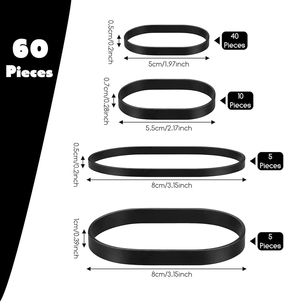 الأربطة المطاطية التكتيكية - 60 قطعة من الأربطة المطاطية السميكة السوداء للبقاء على قيد الحياة، وأدوات الربط، واللوازم المكتبية، وأحجام متنوعة من الأربطة المطاطية شديدة التحمل - 4 مقاسات (60 قطعة)