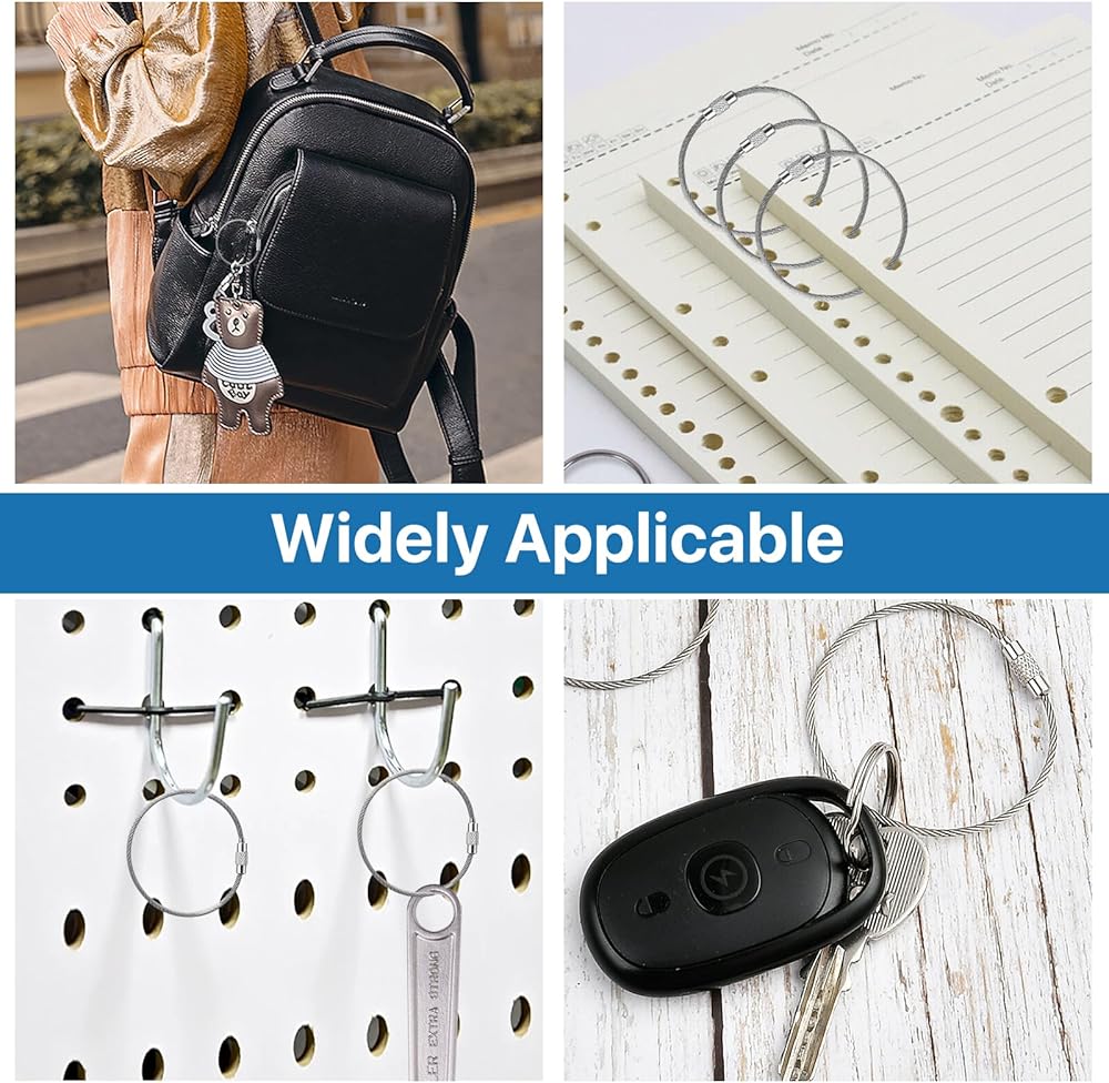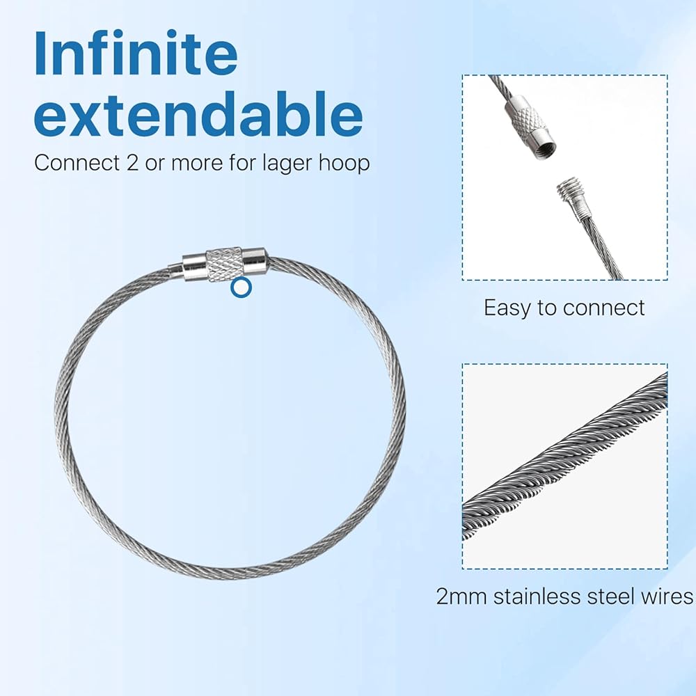 Sturdy Material: The stainless steel rings are made from extra strong braided stainless steel wires, which can be flexible connect, rust resistant, solid enough to prevent your items detaching.