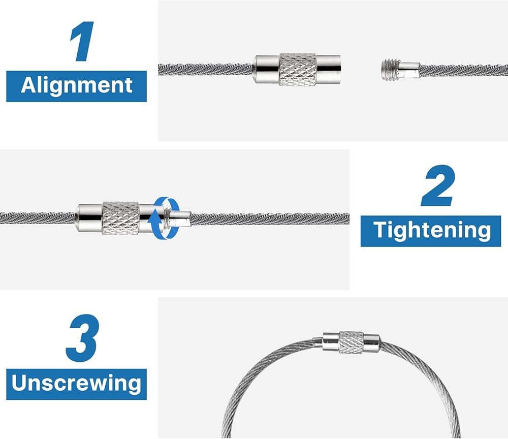 Easy to Use: Just bend the cable, and add or remove items by unscrewing or screwing the connectors, also can connect several together for prolong the total length. Tighten when in use to prevent loss of items.