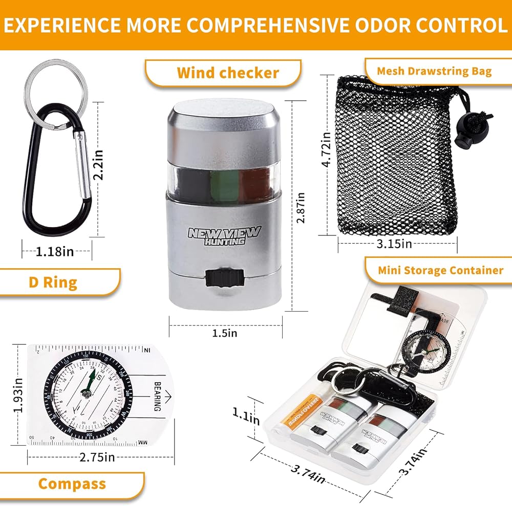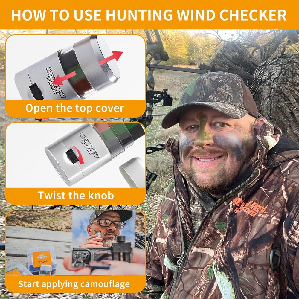 مجموعة طلاء الوجه المموه - سوف تحصل على مجموعتنا: أنبوبين من أعواد رسم الوجه المموهة، ومرآة صغيرة للحمل، وحلقة على شكل حرف D، وبوصلة، وحاوية تخزين صغيرة، وحقيبة شبكية برباط وزجاجة إضافية من مدقق الرياح. مجموعة معدات الصيد هذه مدمجة وسهلة الحمل لإعادة الاستخدام السريع أثناء الأنشطة الخارجية