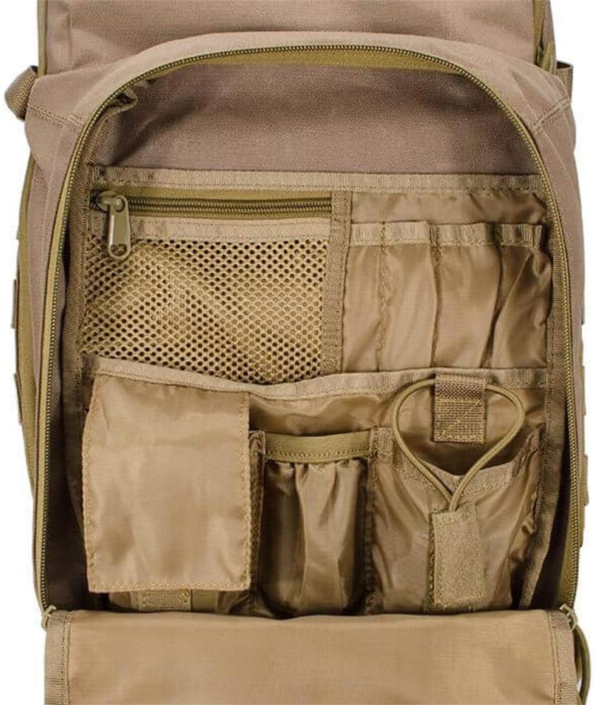 MOLLE Pattern: A MOLLE attachment system allows the user to attach additional modular units and pouches.