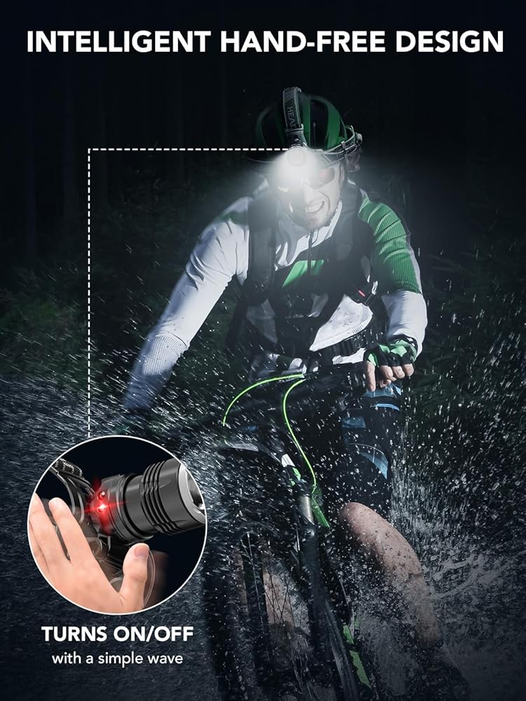 🖐【𝗛𝗮𝗻𝗱𝘀-𝗙𝗿𝗲𝗲 𝗗𝗲𝘀𝗶𝗴𝗻】يمكن تشغيل/إيقاف شريحة التكامل في أي وقت وفقًا لتعليماتك، وتحرير يديك. يحتوي المصباح الأمامي على عصابة رأس مريحة قابلة للتعديل، حتى تتمكن من تحرير يديك للعمل والمغامرة واللعب.