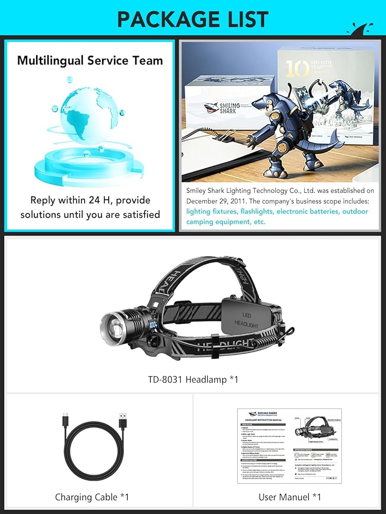✔تصميم شعاع قابل للتكبير: تم تجهيز المصباح الأمامي Smiling Shark TD-8031 بميزة التكبير التي تسمح لك بضبط الشعاع من الضوء الكاشف ذو الزاوية الواسعة إلى الضوء المركز، مما يوفر خيارات إضاءة متعددة لتناسب احتياجاتك الخاصة أثناء العمل على قبعتك الصلبة.