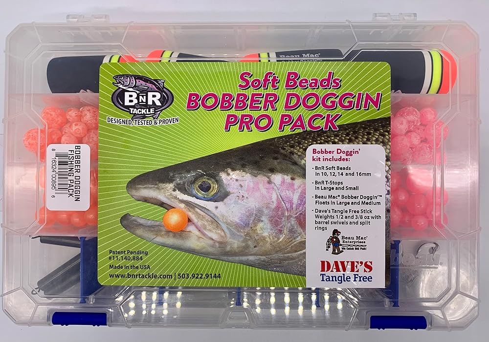 In order to offer our customers a more complete solution BnR Tackle has partnered with Beau Mac floats and Dave's Tangle Free weights to offer the complete Bobber Doggin Pro Fishing Pack. This pack features Large and Medium sizes Beau Mac bobber doggin floats. Dave's Tangle Free Stick weights in 1/2 and 3/8 oz sizes. Three each. BnR Tackle Soft Beads in 10,12,14,16 mm in size of the fishiest colors out there. 20 large clear T-stops and 20 small clear T-stops, Bobber stops and swivels to get you locked and loaded.