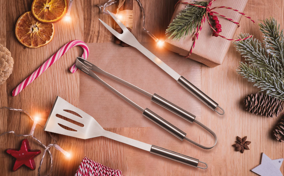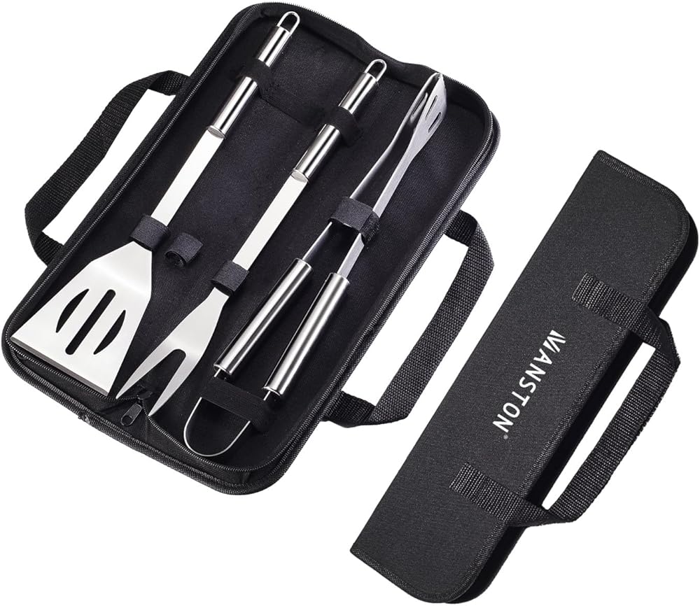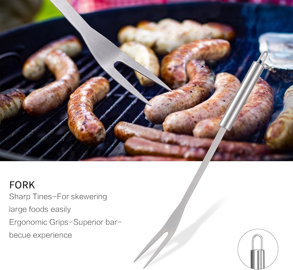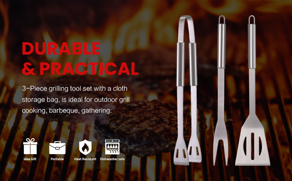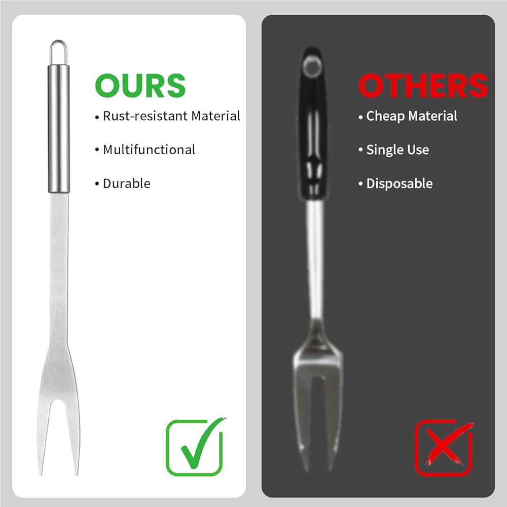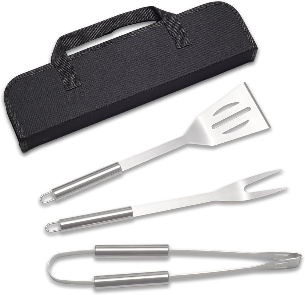 - ✨مجموعة مكونة من 3 قطع تتضمن ملعقة وشوكة شواء وزوج من الملقط وحقيبة تخزين من القماش.