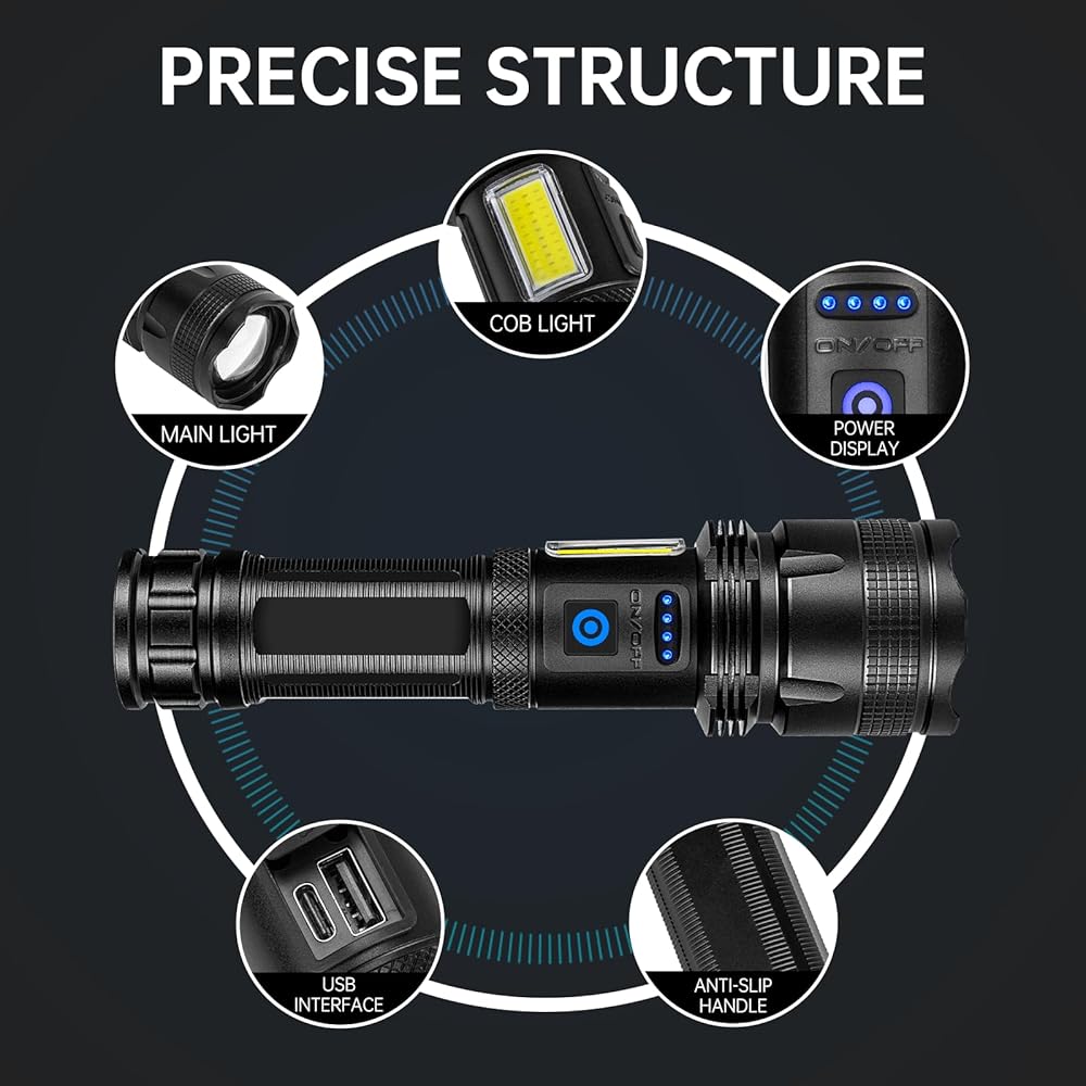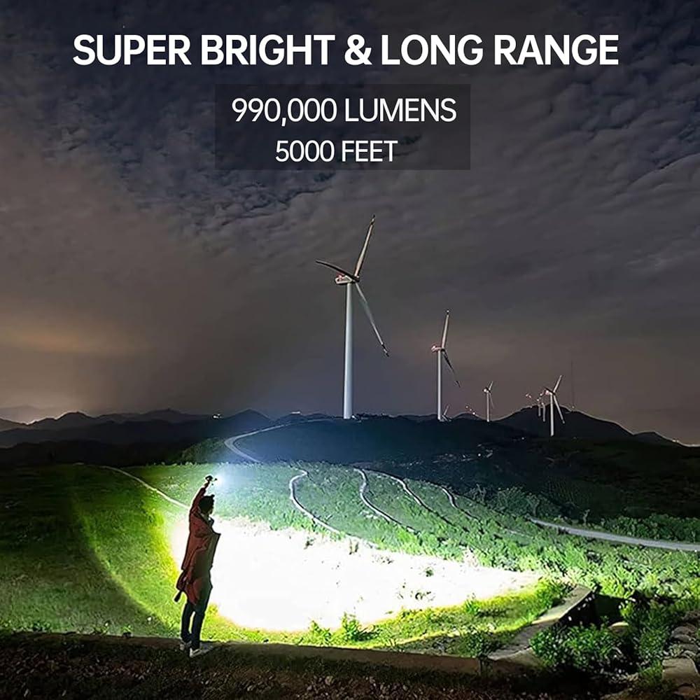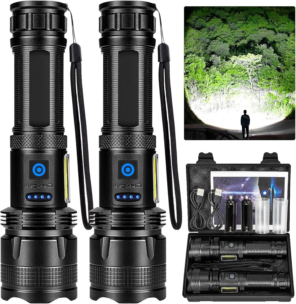 مصابيح LED قابلة لإعادة الشحن من MIXILIN، لومن عالي، 990,000 لومن مصباح يدوي فائق السطوع مع 7 أوضاع، مصابيح يدوية قوية متعددة الوظائف لحالات الطوارئ في التخييم المنزلي - عبوتان