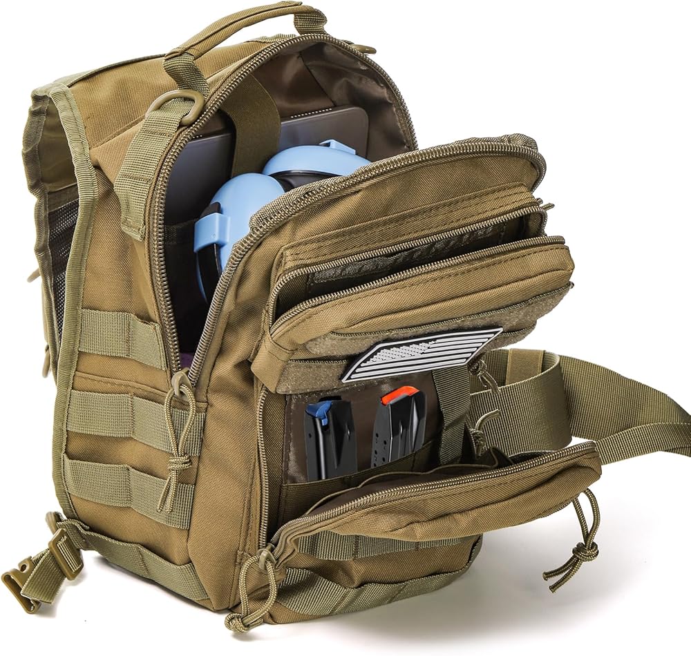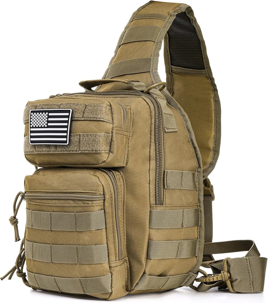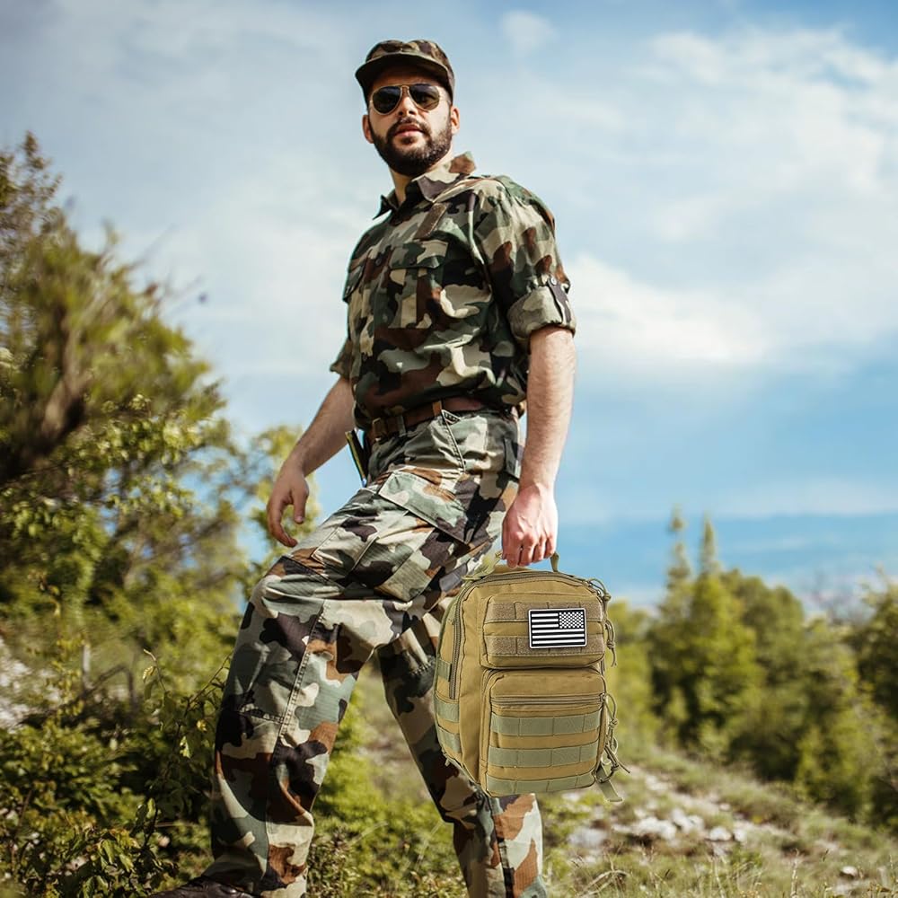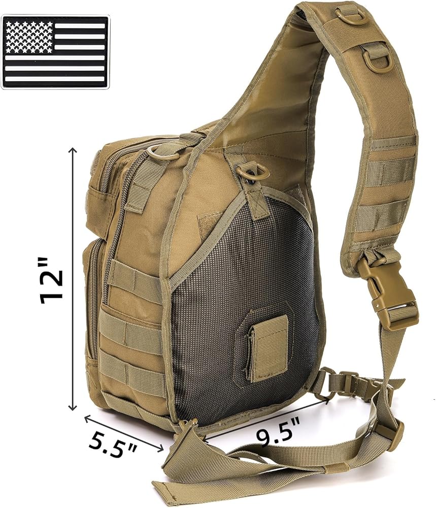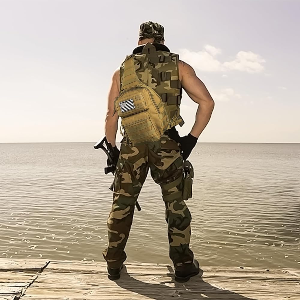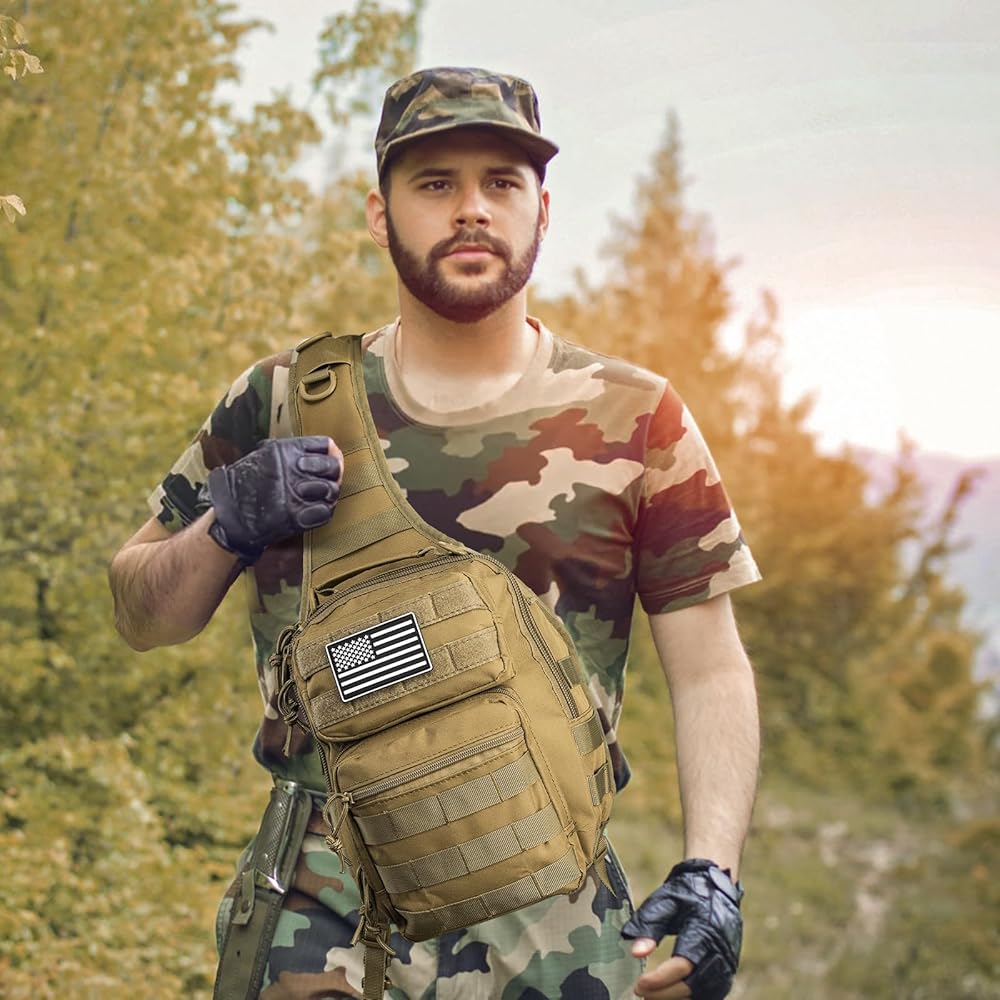 حقيبة ظهر بحمالة تكتيكية، حقيبة كتف عسكرية روفر مع رقعة العلم الأمريكي، حقيبة صدر كروس صغيرة EDC، حقيبة مجموعة مولي أسولت للرجال، في الهواء الطلق، حمل مخفي