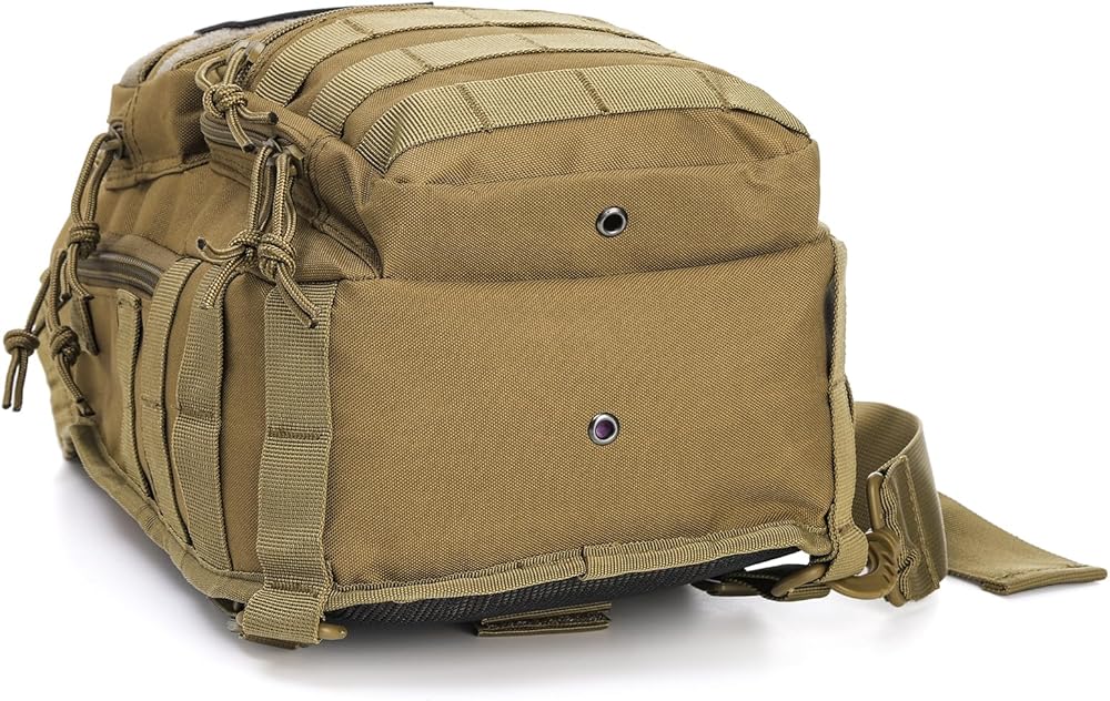 مادة مقاومة للماء: تتضمن هذه الحقيبة التكتيكية رقعة تكتيكية مجانية، يمكنك لصقها على الحقيبة حسب الرغبة. مصنوع من بوليستر 900D، وهو متين ومقاوم للماء. تتميز السحابات شديدة التحمل بخياطة مزدوجة لضمان طول العمر.