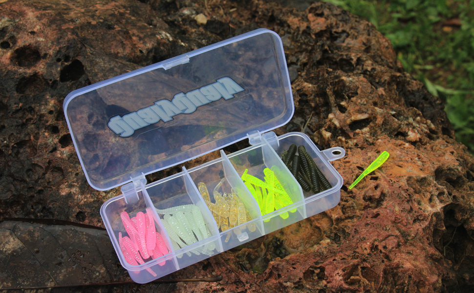 1. مجموعة متنوعة من الألوان: مجموعة رائعة من الطعوم الاصطناعية من QualyQualy، تشكيلة جيدة من الألوان، تحتوي هذه المجموعة على ألوان مختلفة من طُعم الصيد، كما أنها تأتي في صندوق صغير أنيق لإبقائها بداخلها وسهلة الحمل. طُعم الصيد البلاستيكية ذات الذيل الصغير مصنوعة من مواد عالية الجودة مما يجعلها تدوم لفترة أطول. طعم ناعم جدًا، مصنوع بشكل جيد، ليس من السهل ضربه أو تمزيقه، ليس من السهل أن ينفصل.