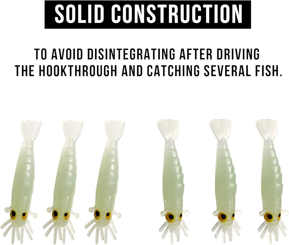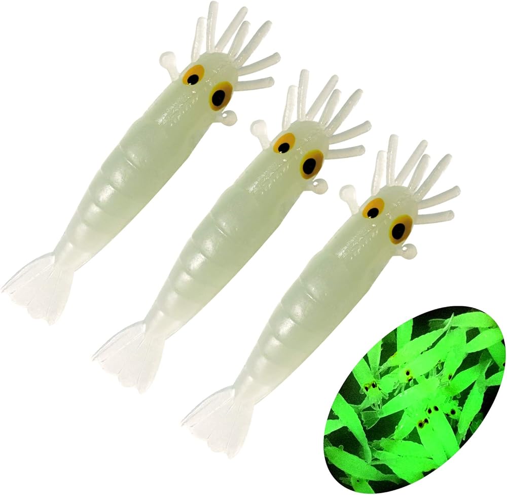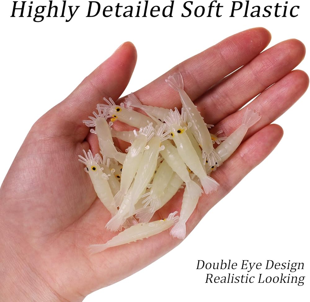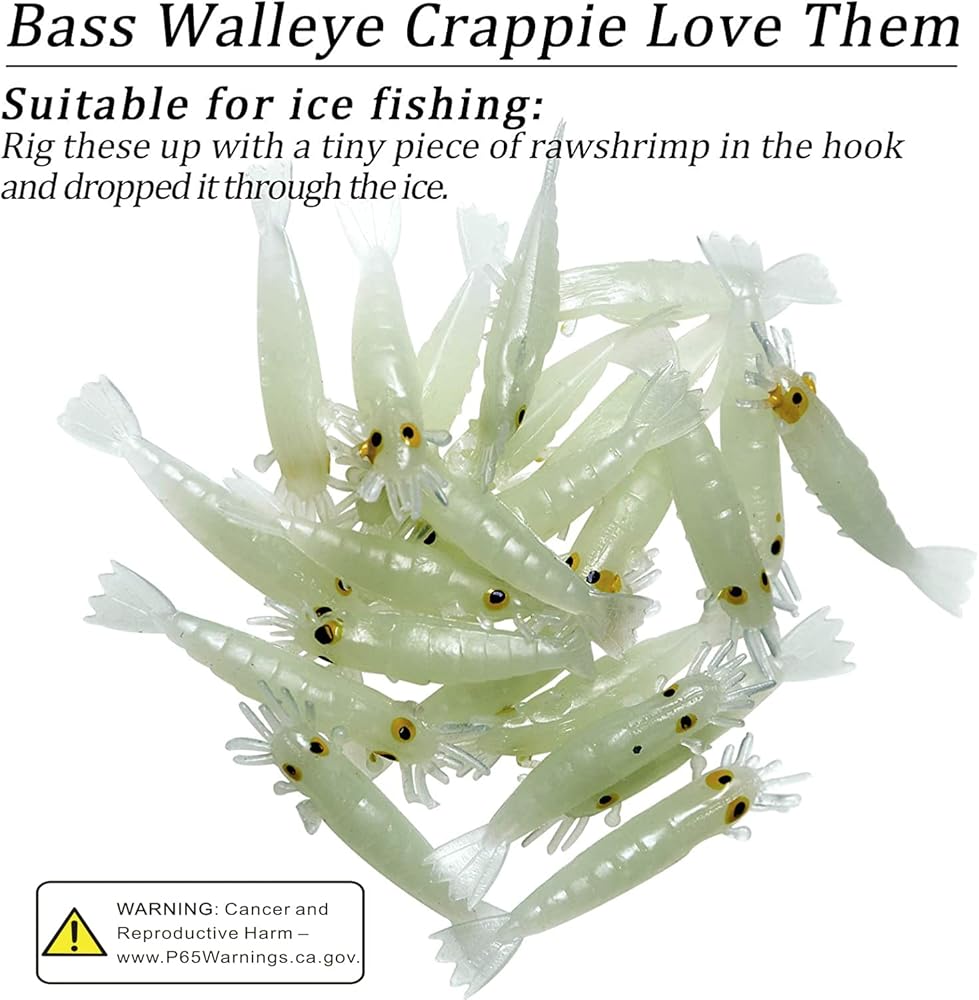 طُعم صيد السمك المتوهج في الظلام من QualyQualy، طُعم الروبيان المتوهج، طُعم الصيد الليلي، طُعم الصيد على الجليد من أجل Crappie Walleye Bass Trout 54 قطعة/50 قطعة