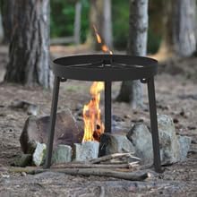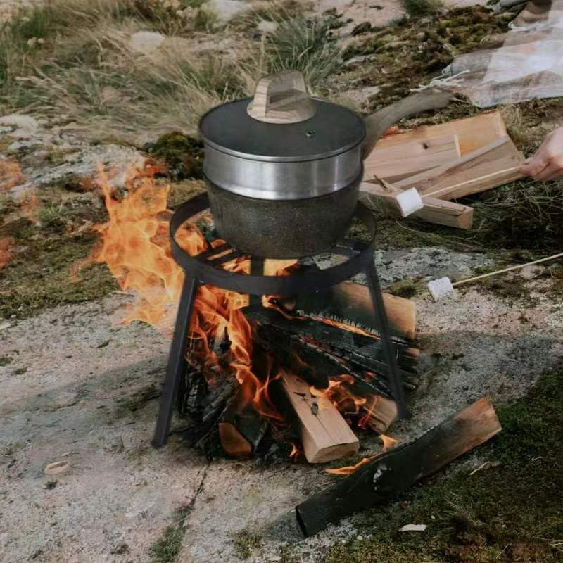 حامل ثلاثي القوائم لإشعال النار مع أرجل قابلة للقفل. يتم قفل الأرجل في وضع الفتح والإغلاق، مما يوفر المزيد من الأمان والثبات للطهي في نار المخيم.
