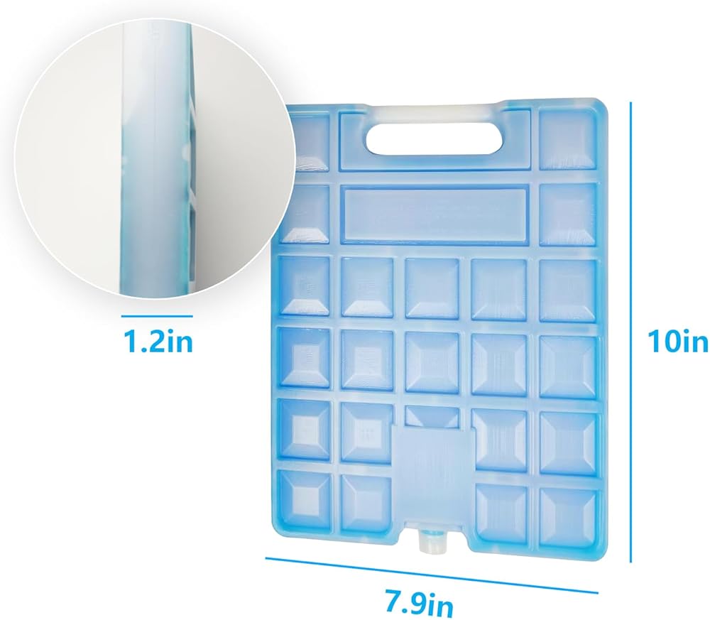 عبوة تجميد كبيرة ورفيعة - يبلغ مقاس كل عبوة ثلج قابلة لإعادة الاستخدام للمبرد 25.4 سم × 19.05 سم × 3.81 سم، مثالية لوضعها في الجزء السفلي من حقيبتك المعزولة، وهي رائعة لوضعها في المبرد الناعم وتتناسب بشكل مثالي مع حقيبة الغداء الخاصة بك عملت على وجبات غداء مرزومة للمدرسة أو العمل. وحجمها كبير بالنسبة للفريزر كمان.