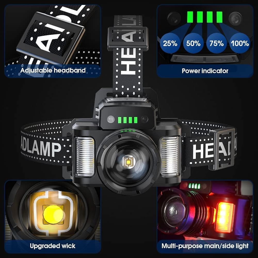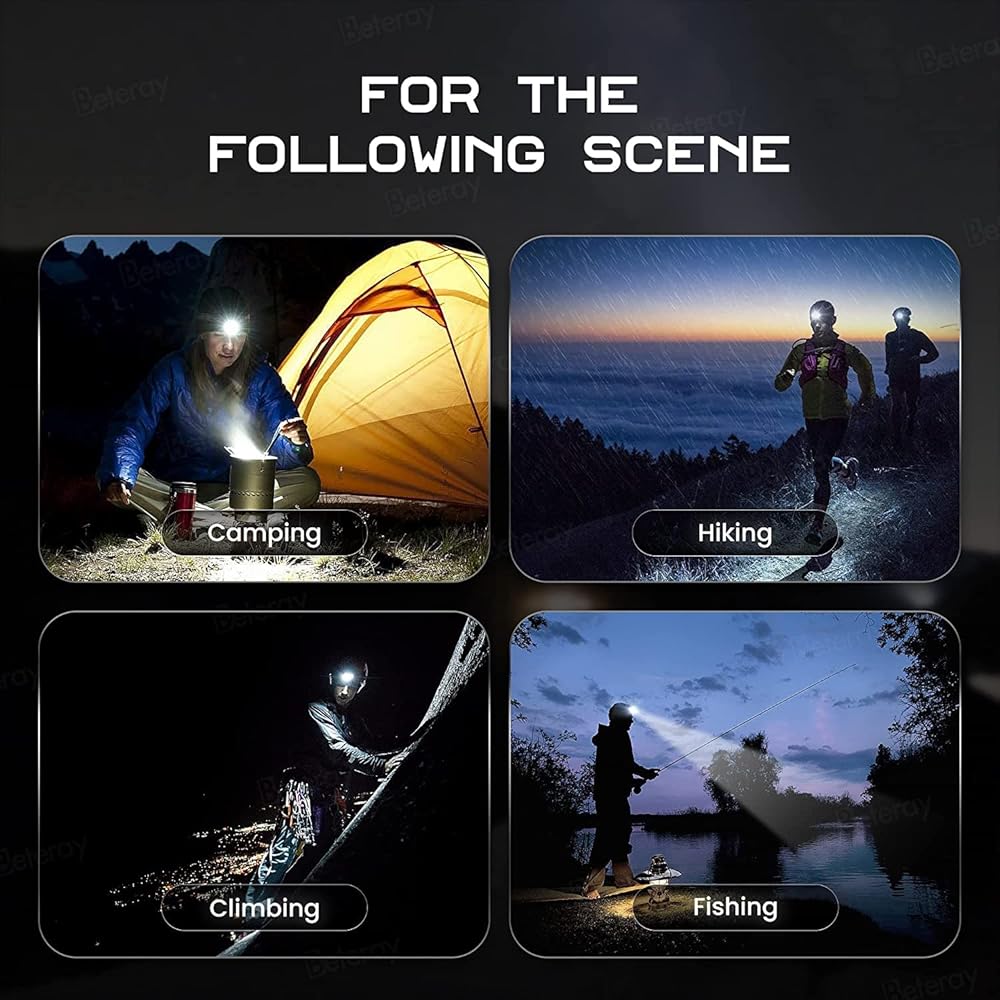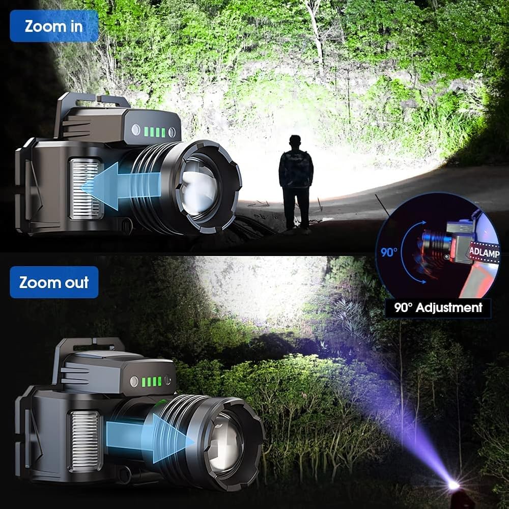 • 【مصباح أمامي أكثر سطوعًا】مصابيح أمامية عالية الطاقة مع أحدث شعاع C**E XHP70.2 الذي أكثر سطوعًا من 6 قطع من خرزات المصباح، يمكن أن يصل السطوع إلى 200000 لومن. مصباح أمامي LED مثالي للتخييم الليلي، والتنزه سيرًا على الأقدام، والصيد، وصيد الأسماك، والشواء، وإصلاح السيارات وما إلى ذلك.