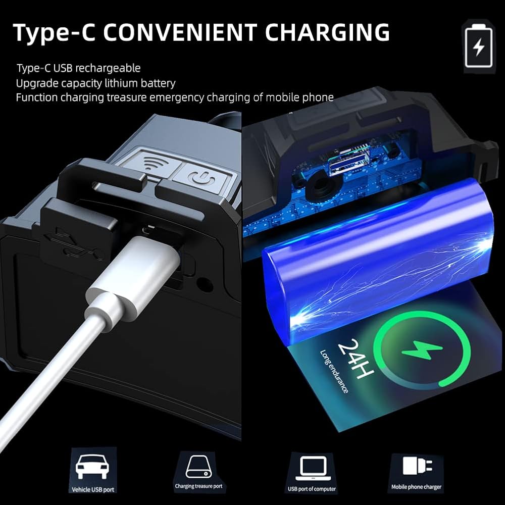 مصباح أمامي 200000 لومن قابل لإعادة الشحن XHP70.2 مصباح أمامي LED قوي للغاية، ضبط التركيز 3 أوضاع مصباح أمامي مقاوم للماء، وظيفة بنك الطاقة للتخييم وركوب الدراجات والمشي لمسافات طويلة (ج)