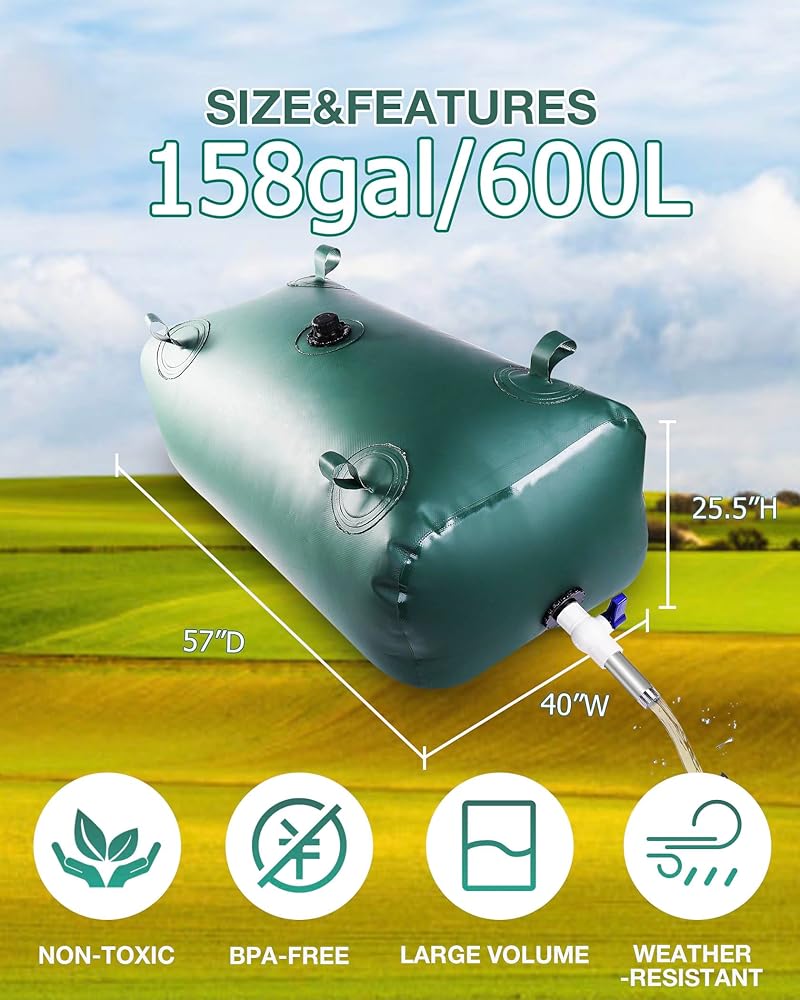 صناعة ممتازة: مصنوعة من مادة PVC خفيفة الوزن ولكنها مقاومة، وقد تم تصميم حاوية تخزين المياه لتحمل الظروف القاسية. تضمن الوصلات الملحومة عالية التردد والختم المقوى أن كيس الماء مقاوم للماء، ومقاوم للحريق، ومقاوم لأشعة الشمس، ومقاوم للتمزق وغير منفذ. إنها مناسبة للاستخدام في درجات حرارة تتراوح من -58 إلى 140 درجة فهرنهايت وسوف تستمر لمدة تصل إلى ثماني سنوات.