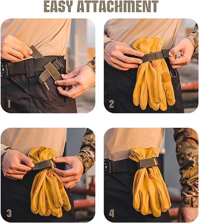• [حماية وعملية]: يحتوي على مشبك تثبيت وحلقة قابل للدوران 360 درجة، ومساحة كبيرة، غير عالقة، وسهل الإخراج من زوايا مختلفة؛ إبزيم بخطاف وحلقة من النايلون قابل للتعديل، يمكنك ضبط المرونة وفقًا لأحجام القفازات المختلفة.