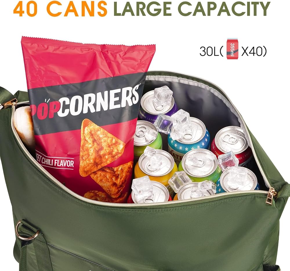 سعة كبيرة 40 علبة - بأبعاد 17.8 × 13.8 × 7.5 بوصة، يتمتع هذا المبرد ذو الجوانب الناعمة بسعة 30 لترًا يمكنه استيعاب ما يصل إلى 40 علبة. يمكنك تخزين جميع المأكولات والمشروبات التي تحتاجها لرحلاتك، مثل المشروبات والسندويشات والمعلبات والفواكه والوجبات الخفيفة وغيرها.
