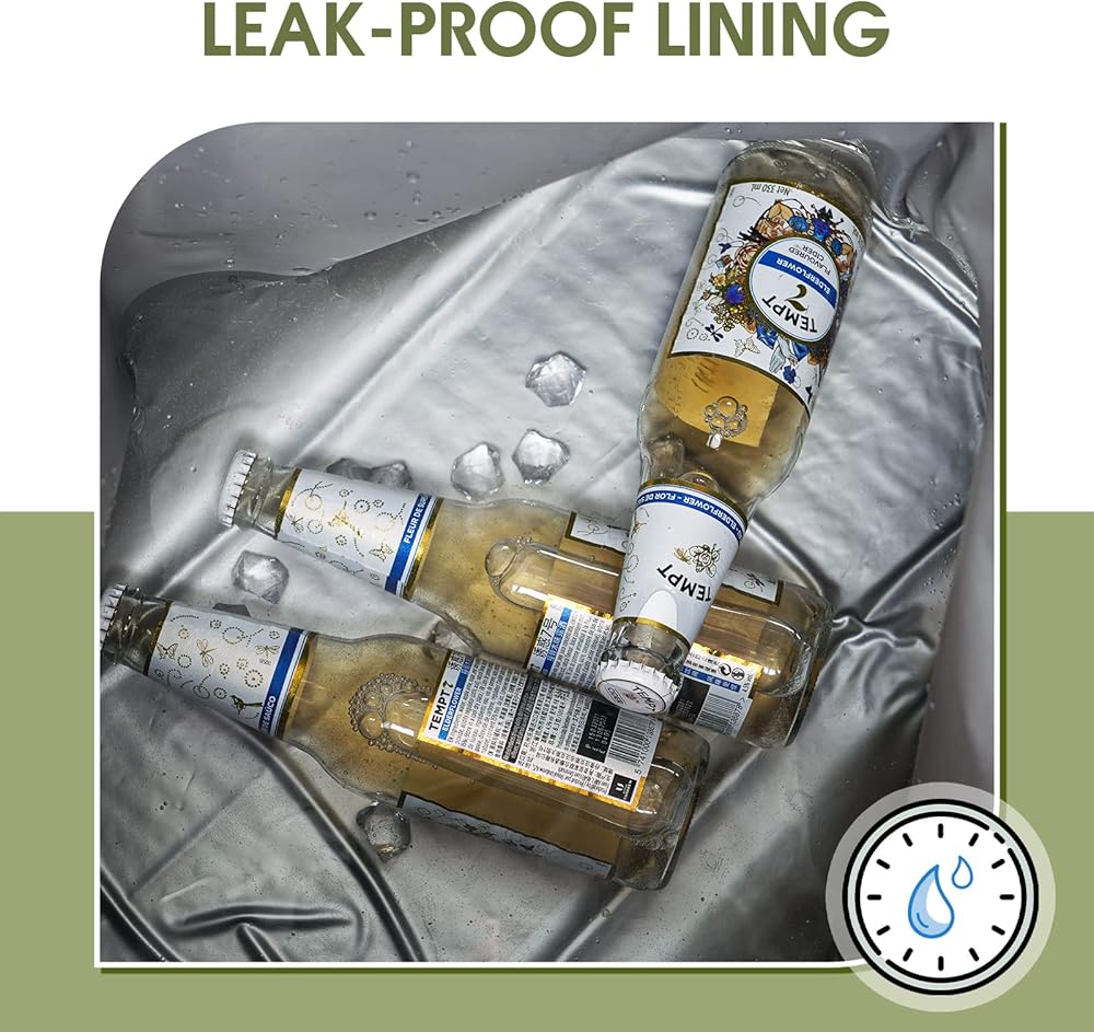 مانع للتسرب ويحافظ على البرودة لمدة 12 ساعة - المادة الداخلية مصنوعة من مادة PEVA عالية الجودة المقاومة للماء وسهلة التنظيف ويمكن أن تضمن منع التسرب بنسبة 100%. مادة عازلة عالية الكثافة تحافظ على الطعام باردًا لمدة 12 ساعة (مع الثلج).
