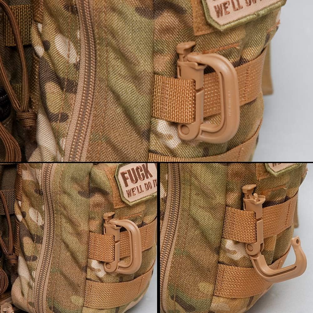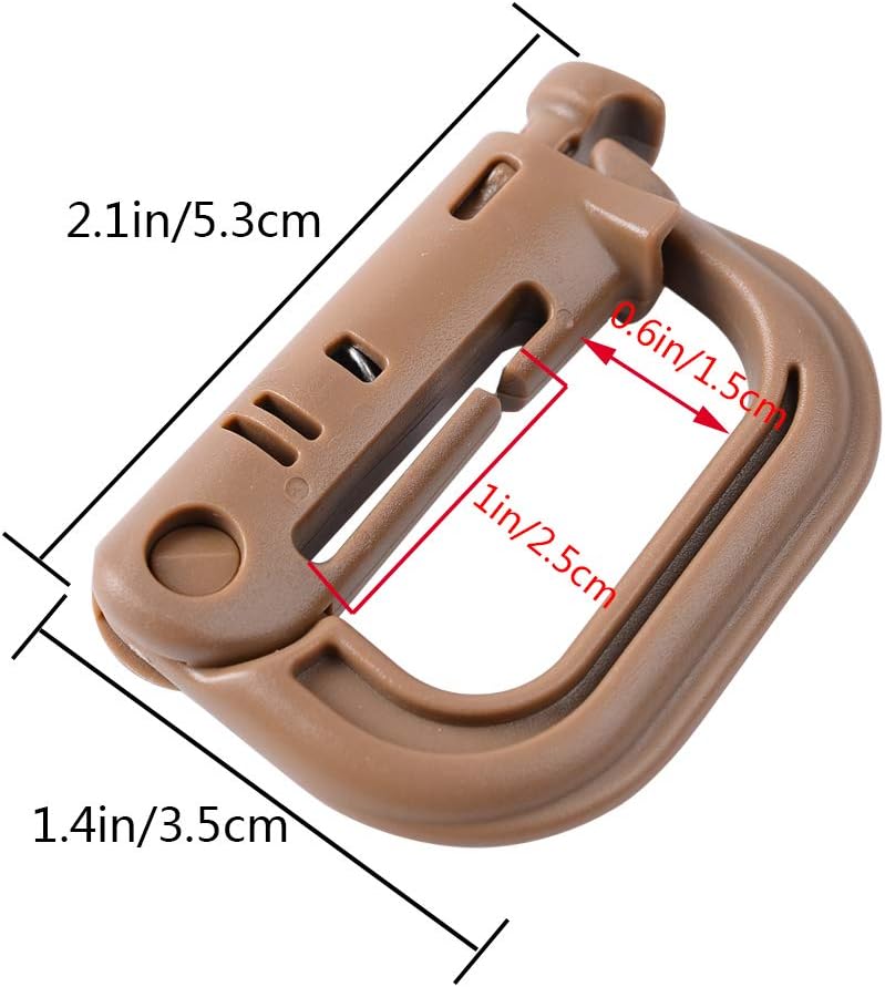 - The size is good for looping round handles or Molle straps bag straps and attaching lanyards, weapons, accessories to bag.