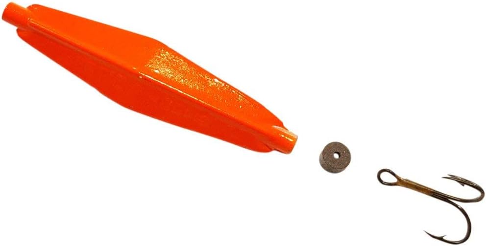 Buzz Bomb, Zzinger, Spinnow, and Zelda Jigs' each have a unique deadly rotation that produces a hydrosonic vibration that attracts all fish into striking. The Spinnow is hardwired for speedy hook ups and is hugely affective in all types of water. It sells strongly on the eastern coast for tuna and mackerel, in the central areas for lake fish like pike and walleye, and on the west coast for salmon, ling cod, yellow eye, cod! The erratic flashing action from our special finishes will make ALL FISH, large and small, strike voraciously.