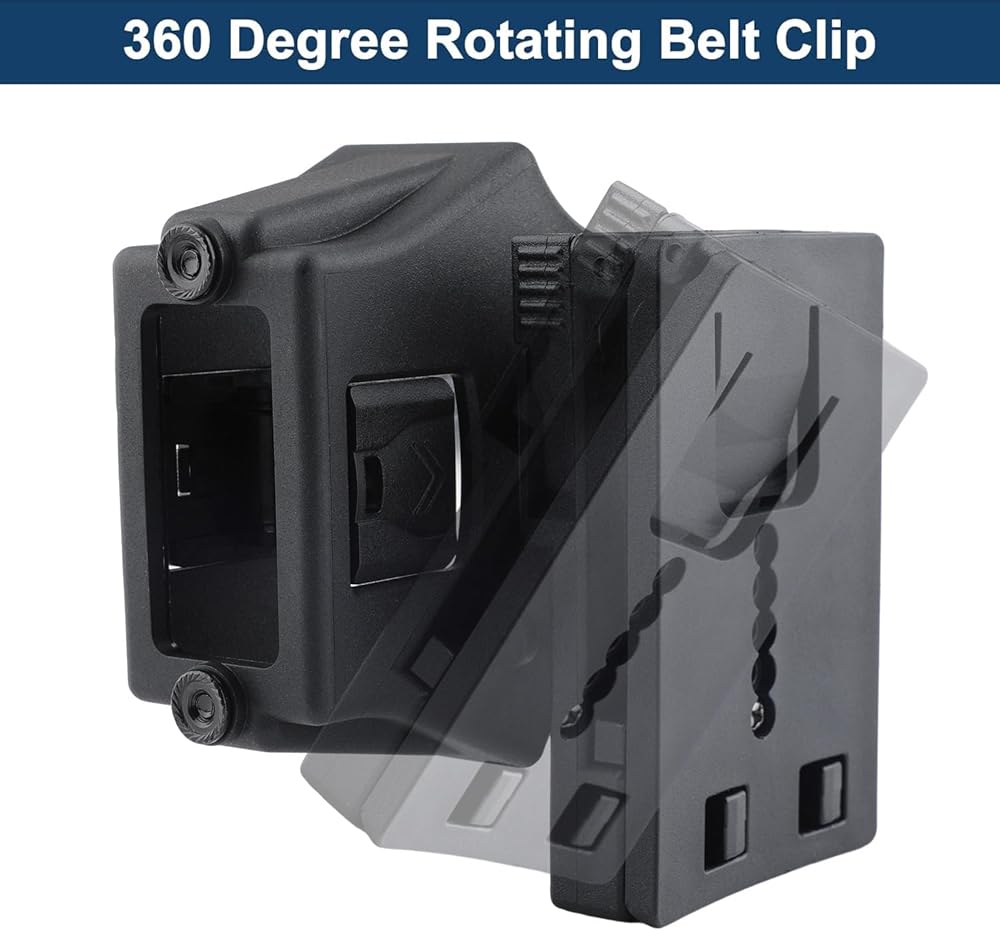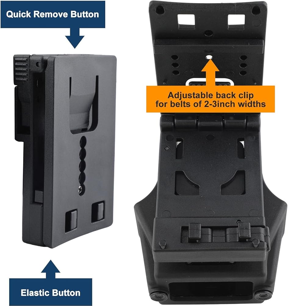 قابل للتعديل - يتيح لك مشبك العرض القابل للتعديل الموجود على الجزء الخلفي من مشبك الحزام تخصيص المقاس المناسب لحزامك أو حقيبة الظهر التكتيكية MOLLE، مما يضمن ملاءمة محكمة وخالية من التذبذب. يمكنك إزالة حزمة الأصفاد بالكامل من الحزام أو مباشرة من العبوة بنقرة واحدة.