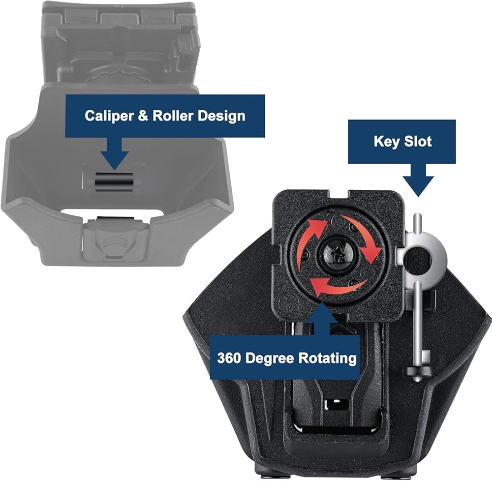 هيكل بوليمر متين - حافظات الأصفاد الخاصة بنا مصنوعة من بوليمرات عالية الجودة مصممة لتحمل قسوة الاستخدام اليومي في بيئات إنفاذ القانون والأمن. ويضمن تصميمه المتين قدرته على تحمل التآكل الناتج عن الاستخدام المتكرر، مما يوفر تجربة موثوقة وطويلة الأمد.