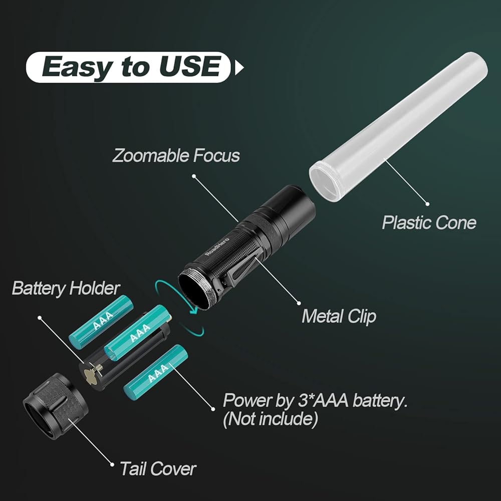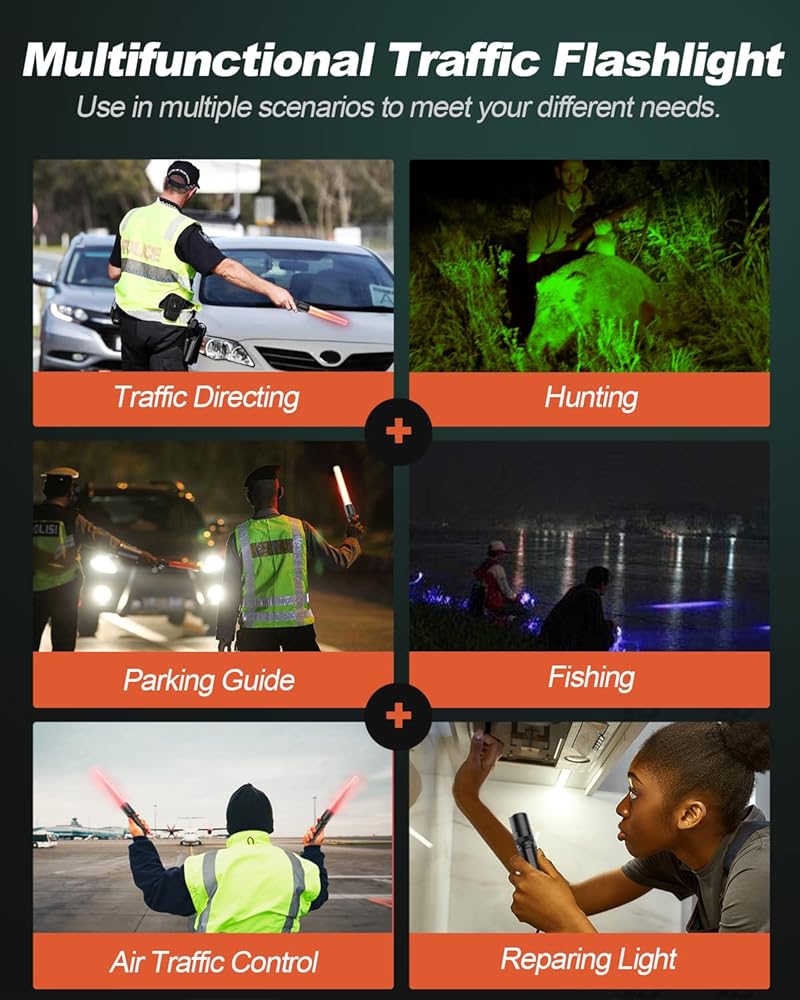 [5 أوضاع وامض]: يمكنك تغيير اللون: وميض أبيض-أزرق-أخضر-أحمر-أحمر. قابل للتكبير للتركيز على الأشياء البعيدة أو التصغير لإضاءة منطقة واسعة. من السهل اختيار الأوضاع المناسبة وفقًا للحالة المحددة.