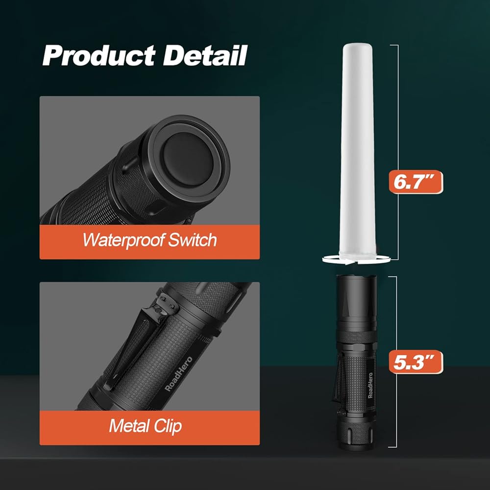 [خفيفة الوزن ومقاومة للماء]: عصا المصباح اليدوي مع ضوء قياس أخف، وزن 0.28 رطل يجعل من السهل جدًا حملها أثناء التنقل سواء في حقيبة الظهر أو الدرج. عصا المرور الخاصة بنا مقاومة للماء ويمكن استخدامها في البيئات الرطبة أو في الطقس السيئ مثل توجيه حركة المرور في الأيام الممطرة، ولكن لا يمكن استخدامها للغوص.