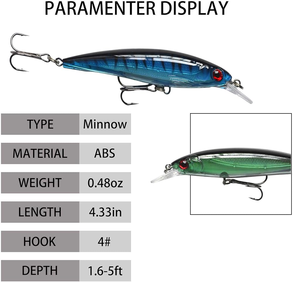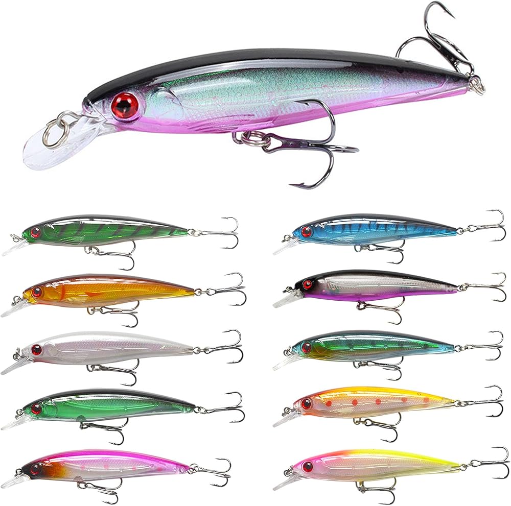 Minniow الصيد السحر Crankbaits مجموعة الصيد الطعوم الصلبة الحياة مثل السباحة طعم الصيد Topwater إغراء مع عيون الصيد ثلاثية الأبعاد، السنانير ثلاثية قوية للمياه المالحة المياه العذبة