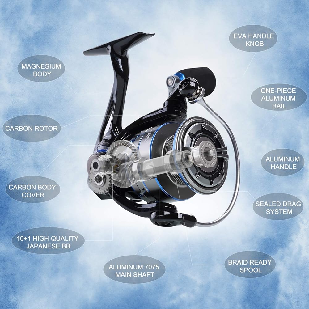 بكرة دوارة Apex Plus، هيكل مغنيسيوم ممتاز خفيف الوزن، بكرة صيد فائقة النعومة مع 10 + 1 بي بي، بكرة قوية ومتينة مع سحب قوي من ألياف الكربون يصل إلى 39 رطلًا كحد أقصى