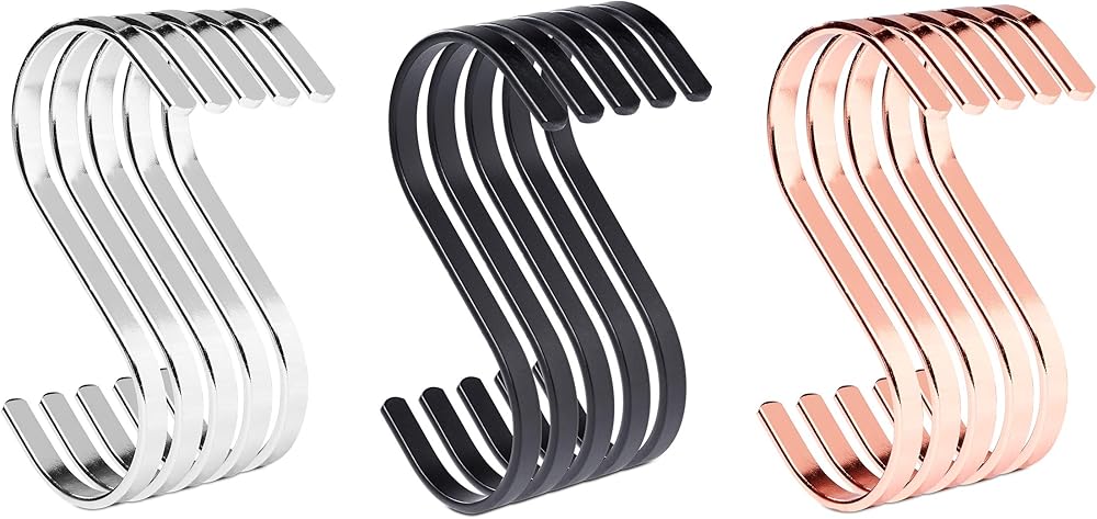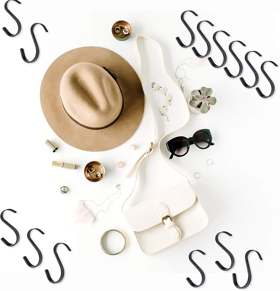 • الحد الأدنى - الخطافات البسيطة على شكل حرف S باللون الأسود تضفي النظام على خزانة ملابسك أو مطبخك أو رف المعاطف في الردهة أو الحمام. خطافات مثالية على شكل حرف S باللون الأسود للتصميم الصناعي أو الأثاث العتيق.