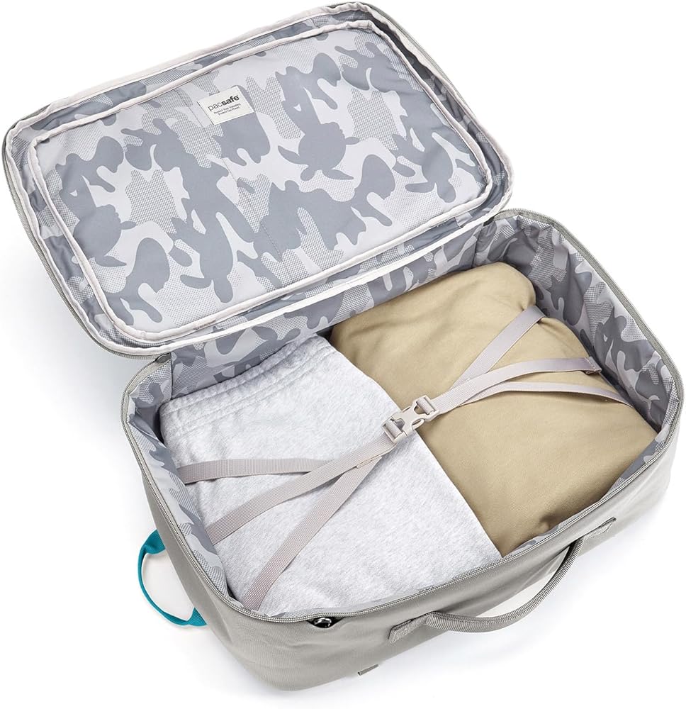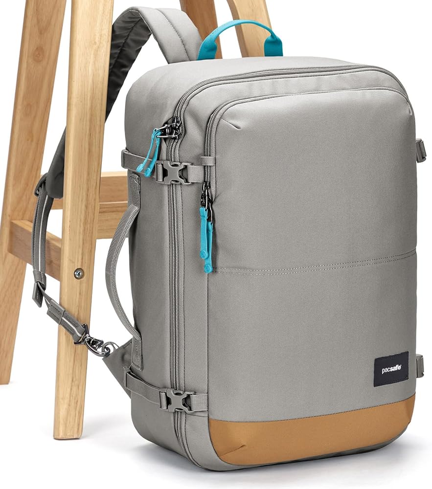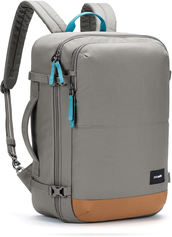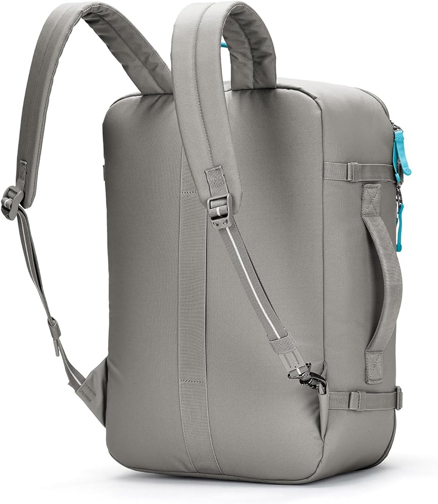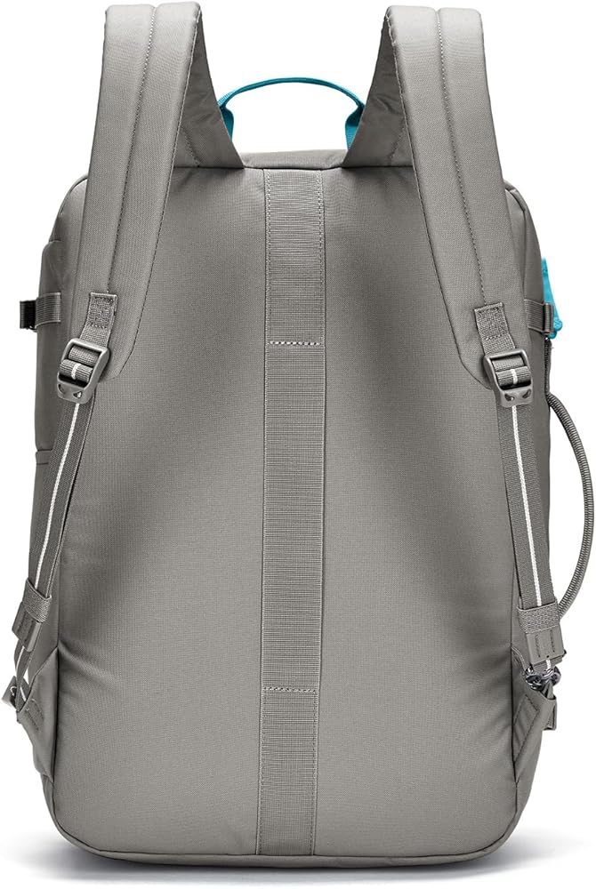 DIMENSIONS, WEIGHT & WARRANTY - 18.5"H x 12.6"W x 7.9"D Weight: 1.64 lbs. Made of soft, durable, water resistant & easy to wipe clean recycled polyester to ensure secure & long-lasting usage everyday & during weekends. Comes with 5-year Pacsafe warranty.